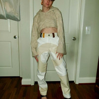 Barragan SS20 Runway leather lined patchwork pants. Super rare. 28in waist. OBSESSED with these but they don’t fit which is tragic. Barragan is known for fusing genderless tailoring with sculptural designs into club wear. love it. see runway photo for reference.