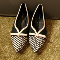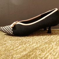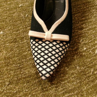 VIVAIA Pointed-Toe Knit Kitten Heels – Black & Ivory Get the perfect balance of comfort and elegance with these VIVAIA pointed-toe kitten heels. Featuring a super soft and breathable knit upper in a stylish black-and-ivory pattern, these heels are known for their lightweight feel, eco-friendly materials, and all-day wearability. A subtle bow adds a feminine touch to this sustainable silhouette. Features: • Brand: VIVAIA • Size: EU 39 or US 8 women’s • Color: Black with ivory accents • Knit upper made from recycled materials • Memory foam insole with arch support • 1.77” (4.5 cm) kitten heel • Slip-on style • Durable rubber outsole