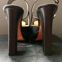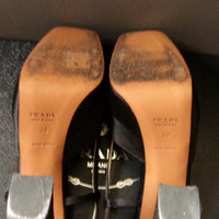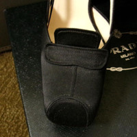 Prada Vintage Black Satin Platform Slingbacks | Fall 2003 collection | Authenticated + Original Box | Size 39 / US 8 ⸻ These Prada satin platform slingbacks are from Prada’s fall 2003 collection, featuring that signature retro-modern silhouette with a sharp square toe and ultra-sculptural block heel. Crafted in Italy from jet-black satin, they feature a loafer-inspired vamp and delicate slingback strap — merging masculine tailoring cues with high-femme luxury. A true hybrid of elegance and bold 2000s energy. ✨ Details: • Size EU 39 (fits US women’s 8) • Black satin upper with loafer-style front detail • Sculptural block heel + slight platform • Made in Italy • Comes with original Prada box • 100% authenticated via Vestiaire Collective • Normal sole wear from prior owner; Sharpie mark on insole (reflected in price) #pradavintage #designervintage #vintagepradaheels #y2kprada