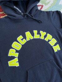 Supreme Apocalypse Hoodie SS16 Navy Gently used -no stains -no holes -no major flaws 100% Authentic Ships next day *I no longer control the price of shipping, Graileds Label pricing goes into effect July 26th *Can ship worldwide, dm with your location Thank you for looking at my listing! I sell many items including brands like Supreme , FTP , Palace , and Bape Items are sold as pictured and are authentic. Streetwear , designer , vintage . You can find it all on my page.