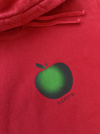 Supreme Apple Hoodie SS19 Red Small Gently used -no stains -no holes -no major flaws 100% Authentic Ships next day *I no longer control the price of shipping, Graileds Label pricing goes into effect July 26th *Can ship worldwide, dm with your location Thank you for looking at my listing! I sell many items including brands like Supreme , FTP , Palace , and Bape Items are sold as pictured and are authentic. Streetwear , designer , vintage . You can find it all on my page.