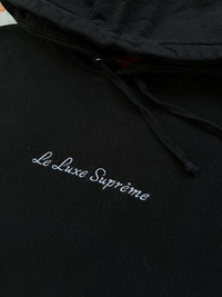 Supreme Le Luxe Cursive Hoodie SS19 Black Large Gently used -no stains -no holes -no major flaws -light fade 100% Authentic Ships next day *Can ship worldwide, dm with your location Thank you for looking at my listing! I sell many items including brands like Supreme , FTP , Palace , and Bape Items are sold as pictured and are authentic. Streetwear , designer , vintage . You can find it all on my page.