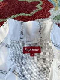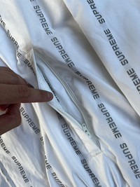 Supreme Reflective Text Track Jacket FW18 White Medium Gently used -no stains -no holes -no major flaws 100% Authentic Ships next day *I no longer control the price of shipping, Graileds Label pricing goes into effect July 26th *Can ship worldwide, dm with your location Thank you for looking at my listing! I sell many items including brands like Supreme , FTP , Palace , and Bape Items are sold as pictured and are authentic. Streetwear , designer , vintage . You can find it all on my page.
