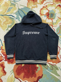 Supreme Old English Reverse Fleece Hoodie FW16 Navy Medium Used -washed & worn -no stains -light fade 100% Authentic Ships next day *Can ship worldwide, dm with your location Thank you for looking at my listing! I sell many items including brands like Supreme , FTP , Palace , and Bape Items are sold as pictured and are authentic. Streetwear , designer , vintage . You can find it all on my page.