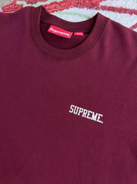 Supreme Short Sleeve Crewneck SS15 Burgundy Gently used -no stains -no holes -no major flaws 100% Authentic Ships next day *I no longer control the price of shipping, Graileds Label pricing goes into effect July 26th *Can ship worldwide, dm with your location Thank you for looking at my listing! I sell many items including brands like Supreme , FTP , Palace , and Bape Items are sold as pictured and are authentic. Streetwear , designer , vintage . You can find it all on my page.