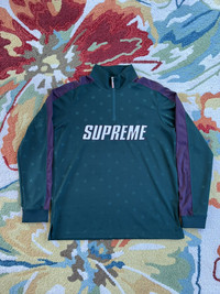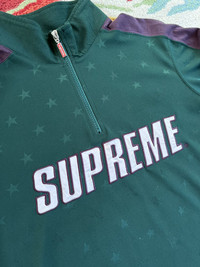 Supreme Track Half Quarter Zip Pullover FW18 Green Small Gently used -no stains -no holes -no major flaws 100% Authentic Ships next day *Can ship worldwide, dm with your location Thank you for looking at my listing! I sell many items including brands like Supreme , FTP , Palace , and Bape Items are sold as pictured and are authentic. Streetwear , designer , vintage . You can find it all on my page.