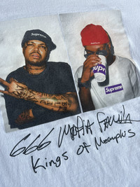 Supreme Three Six Mafia Tee FW12 White Fits Small/Medium Gently used -no major stains -no holes -very light graphic wear 100% Authentic Ships next day *I no longer control the price of shipping, Graileds Label pricing goes into effect July 26th *Can ship worldwide, dm with your location Thank you for looking at my listing! I sell many items including brands like Supreme , FTP , Palace , and Bape Items are sold as pictured and are authentic. Streetwear , designer , vintage . You can find it all on my page.