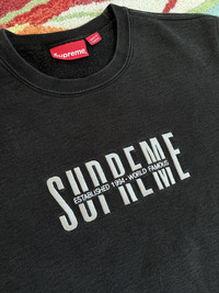 Supreme World Famous Crewneck Sweatshirt FW18 Black Gently used -no stains -no major flaws -light fade 100% Authentic Ships next day *Can ship worldwide, dm with your location Thank you for looking at my listing! I sell many items including brands like Supreme , FTP , Palace , and Bape Items are sold as pictured and are authentic. Streetwear , designer , vintage . You can find it all on my page.