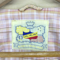 PLEASE READ THE DESCRIPTION!!! DON'T BE SHY TO ASK ANY QUESTION :-WE DO COMBINE SHIPPING. WE ONLY SHIP VIA EXPRESS SHIPPING WORLDWIDE. HAPPY SHOPPING WITH US. ◾️Brand :- Karl helmut ◾️ Size On Tag :- RECOMMENDED SIZE : (Please refer to manual measurement) ◾️MADE IN :- ◾️MATERIAL :- (Please refer pictures attached) ◾️Please see the actual measurements :-(All measurements were taken lying flat) ◾️Actual size Manual Measurement (approximately) : UNDERARM TO UNDERARM (PIT TO PIT) :- 23 inches LENGTH (BACK COLLAR FOLD TO HEM :- 26 inches ◾️Condition :- GREAT CONDITION (USED CLOTHING) ◾️Overall Condition :- 8/10 An item that has been used or worn previously. See Our listing for full details and description of any imperfections. Please don't expect it to be like new or in pristine condition ◾️WE ARE USING EXPRESS SHIPPING, IT TAKES 3-5 DAYS ONLY TO ARRIVE. PLEASE LEAVE YOUR PHONE NUMBER ON THE NOTE WHILE MAKE A PURCHASE AND PLEASE MAKE SURE YOUR ADDRESS IS COMPLETE AND CORRECT ◾️Don't Worry About Customs Tax or Fees. usually Declare all Items as 'Gift' & Declare Value of Item Lower than Original Price. All Items are Sold "AS IS" so Please be Sure to Read The Entire Description and Look at All The Pictures. 🚫ATTENTION : Please pay close attention to measurements provided. Do not rely on tag size as pre-worn items may have been altered, stretched or shrunk & vintage sizes do not directly translate the modern sizes.The best way to ensure a correct fit is to compare our measurements with the measurements of a similar item that you know fits you well.Please enlarge the photos for clearer image. ⛔️STRICTLY NO RETURNS NO REFUND⛔️ 🙏🏻THANK FOR YOUR VISIT🙏🏻