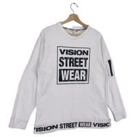 PLEASE READ THE DESCRIPTION!!! DON'T BE SHY TO ASK ANY QUESTION :-WE DO COMBINE SHIPPING. WE ONLY SHIP VIA EXPRESS SHIPPING WORLDWIDE. HAPPY SHOPPING WITH US. ◾️Brand :- Vision StreetWear ◾️ Size On Tag :- Medium RECOMMENDED SIZE : (Please refer to manual measurement) ◾️MADE IN :- ◾️MATERIAL :- (Please refer pictures attached) ◾️Please see the actual measurements :-(All measurements were taken lying flat) ◾️Actual size Manual Measurement (approximately) : UNDERARM TO UNDERARM (PIT TO PIT) :- 21 inches LENGTH (BACK COLLAR FOLD TO HEM :- 27 inches ◾️Condition :- GREAT CONDITION (USED CLOTHING) ◾️Overall Condition :- 8/10 An item that has been used or worn previously. See Our listing for full details and description of any imperfections. Please don't expect it to be like new or in pristine condition ◾️WE ARE USING EXPRESS SHIPPING, IT TAKES 3-5 DAYS ONLY TO ARRIVE. PLEASE LEAVE YOUR PHONE NUMBER ON THE NOTE WHILE MAKE A PURCHASE AND PLEASE MAKE SURE YOUR ADDRESS IS COMPLETE AND CORRECT ◾️Don't Worry About Customs Tax or Fees. usually Declare all Items as 'Gift' & Declare Value of Item Lower than Original Price. All Items are Sold "AS IS" so Please be Sure to Read The Entire Description and Look at All The Pictures. 🚫ATTENTION : Please pay close attention to measurements provided. Do not rely on tag size as pre-worn items may have been altered, stretched or shrunk & vintage sizes do not directly translate the modern sizes.The best way to ensure a correct fit is to compare our measurements with the measurements of a similar item that you know fits you well.Please enlarge the photos for clearer image. ⛔️STRICTLY NO RETURNS NO REFUND⛔️ 🙏🏻THANK FOR YOUR VISIT🙏🏻