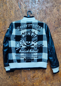 Description PLEASE READ BEFORE BUY!! BUY WITH CONFIDENT!! Candy Stripper Varsity Jacket MEASUREMENTS (WHEN LAID FLAT): (Please check the actual measurements below) Armpit to armpit : 18 Inches (recommended S) Length from top to bottom : 22.5 inches Sleeve length from under armpit to end of cuff : -17 Condition : 8/10 Good Condition Defect : none WE GUARANTEE SATISFACTION & AUTHENTICITY! NOTHING TO WORRY AND THANK YOU! Payment method : Paypal Shipping Item will be shipped in 1-3 working days after payment received. Shipping takes 10-14 business days to most countries. All items will be post by registered mail/parcel with record tracking numbers. Note : An Item That Has Been Used Or Worn Previously. No return after payment made. Please Leave Your Phone Number On The Note While Make A Purchase. Dont Forget To Check Out My Store For More Great Stuff Thank For Visited.