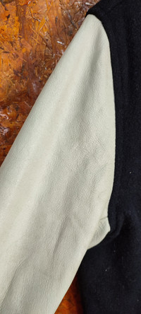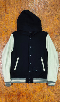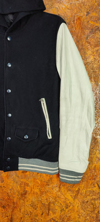 Description PLEASE READ BEFORE BUY!! BUY WITH CONFIDENT!! Vintage Varsity Jacket Hoodie MEASUREMENTS (WHEN LAID FLAT): (Please check the actual measurements below) Armpit to armpit : 20 Inches (recommended M) Length from top to bottom : 25 inches Sleeve length from under armpit to end of cuff : -18 Condition : 8/10 Good Condition Defect : Defect on sleeve leather refer photo WE GUARANTEE SATISFACTION & AUTHENTICITY! NOTHING TO WORRY AND THANK YOU! Payment method : Paypal Shipping Item will be shipped in 1-3 working days after payment received. Shipping takes 10-14 business days to most countries. All items will be post by registered mail/parcel with record tracking numbers. Note : An Item That Has Been Used Or Worn Previously. No return after payment made. Please Leave Your Phone Number On The Note While Make A Purchase. Dont Forget To Check Out My Store For More Great Stuff Thank For Visited.