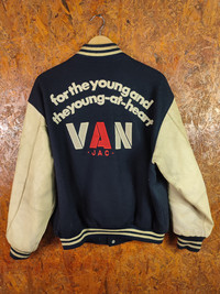 Description PLEASE READ BEFORE BUY!! BUY WITH CONFIDENT!! Van JAC Varsity Jacket Leather Sleeve MEASUREMENTS (WHEN LAID FLAT): (Please check the actual measurements below) Armpit to armpit : 23 Inches (recommended L) Length from top to bottom : 27 inches Sleeve length from under armpit to end of cuff : -17 Condition : 8/10 Good Condition Defect : stain at sleeve refer photo WE GUARANTEE SATISFACTION & AUTHENTICITY! NOTHING TO WORRY AND THANK YOU! Payment method : Paypal Shipping Item will be shipped in 1-3 working days after payment received. Shipping takes 10-14 business days to most countries. All items will be post by registered mail/parcel with record tracking numbers. Note : An Item That Has Been Used Or Worn Previously. No return after payment made. Please Leave Your Phone Number On The Note While Make A Purchase. Dont Forget To Check Out My Store For More Great Stuff Thank For Visited. ##584##