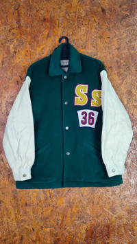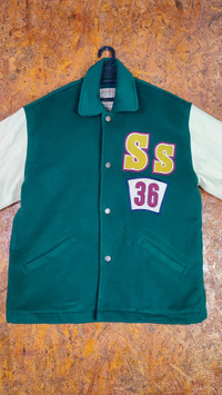 Description PLEASE READ BEFORE BUY!! BUY WITH CONFIDENT!! Vintage Saburoku Varsity Jacket MEASUREMENTS (WHEN LAID FLAT): (Please check the actual measurements below) Armpit to armpit : 23 Inches (recommended L) Length from top to bottom : 28.5 inches Sleeve length from under armpit to end of cuff : -16 Condition : 8/10 Good Condition Defect : refer photo.. have minor defect WE GUARANTEE SATISFACTION & AUTHENTICITY! NOTHING TO WORRY AND THANK YOU! Payment method : Paypal Shipping Item will be shipped in 1-3 working days after payment received. Shipping takes 10-14 business days to most countries. All items will be post by registered mail/parcel with record tracking numbers. Note : An Item That Has Been Used Or Worn Previously. No return after payment made. Please Leave Your Phone Number On The Note While Make A Purchase. Dont Forget To Check Out My Store For More Great Stuff Thank For Visited.