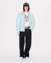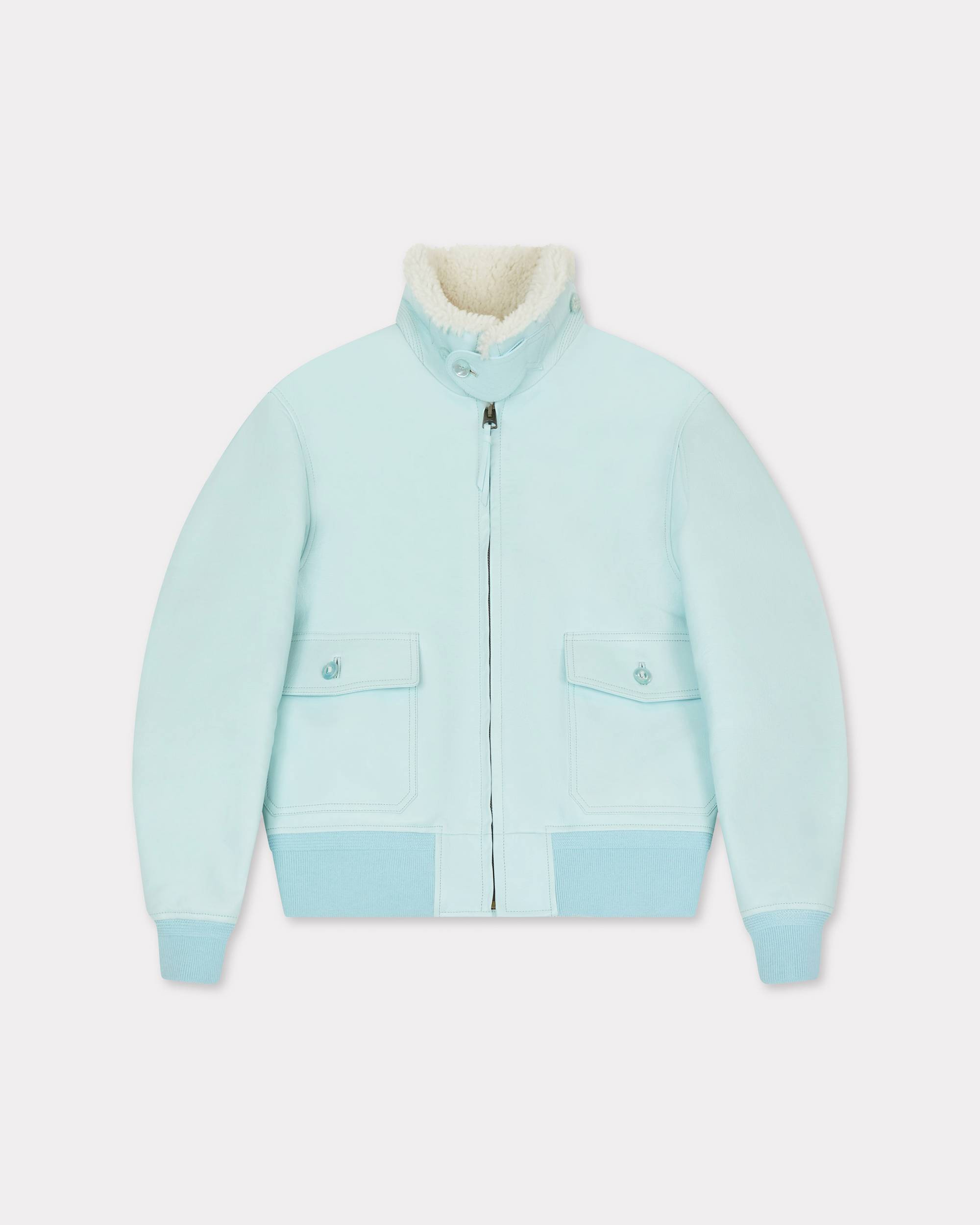 Aviator jacket in leather. One flap to wear the collar closer. Contrasted shearling collar. Two patch pockets with a flap at front, one side pocket at sleeve. One inside pocket. Ribs at cuffs and bottom. Tonal KENZO stamped under the zip. Product Reference: FF62LB9340AM.60 SIZE & FIT The model is 175 cm tall and is wearing size S. COMPOSITION & CARE Made in Italy 100% cow leather Do not bleach Do not tumble dry Do not wash Do not wet-clean