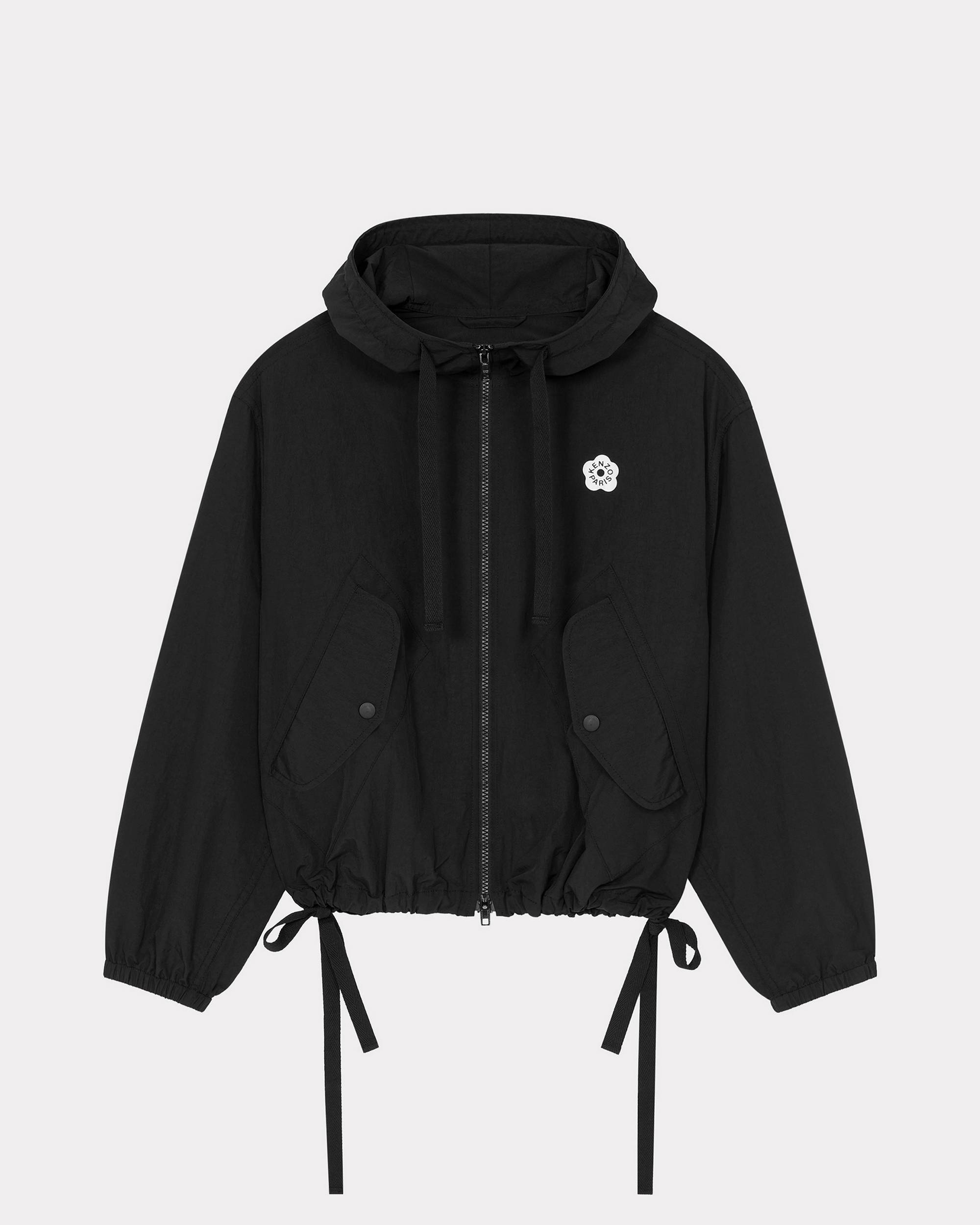 This short windbreaker offers a minimalist interpretation of Nigo’s iconic 'Boke Flower', the new signature for the KENZO Paris women’s collection. It enhances the figure thanks to its original design with a hood and adjustable hem. The waterproof fabric offers protection from bad weather. 'Boke Flower 2.0' waterproof windbreaker. Long sleeves with fitted cuffs. Hood with drawstring. 'Boke Flower 2.0' motif printed on the chest. 'KENZO Paris' signature printed on the back. Two slanted buttoned flap pockets. Drawstrings at hem. Double zip fastening. Product Reference: FE52BL1719NF.99 SIZE & FIT Length at back: 60 cm. The model is 175 cm tall and is wearing size S. COMPOSITION & CARE Made in China 100% nylon Do not bleach Do not dry-clean Do not iron Line drying in the shade Do not tumble dry Hand wash Very mild professional wet-cleaning