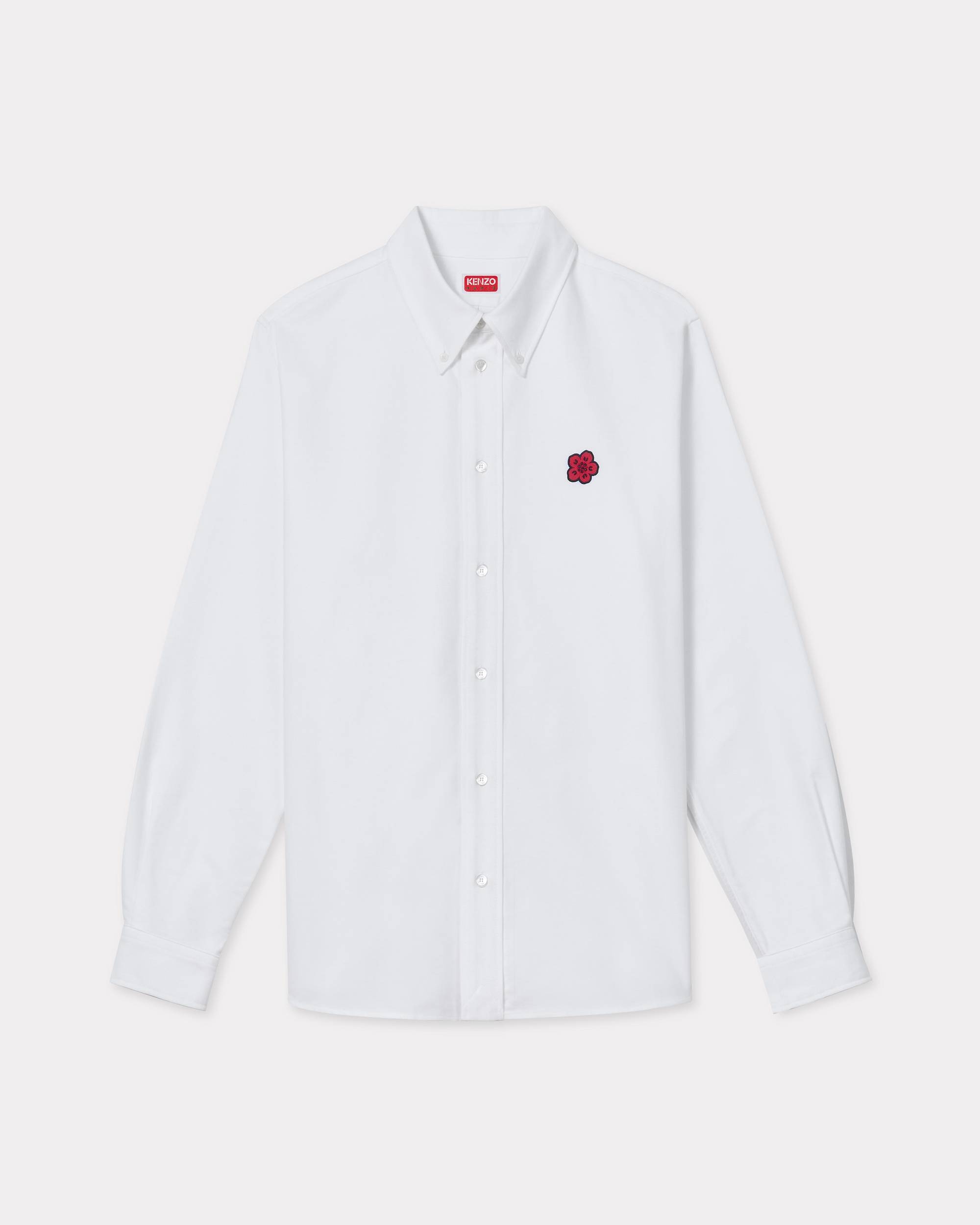 'Boke Flower' casual shirt. Oxford cotton. Boke Flower embroidery at chest. 'KENZO Paris' signature on the back neck. Button-down collar. Product Reference: FE65CH4109LO.01 SIZE & FIT Casual fit. Back length at 75 cm. The model is 185 cm tall and is wearing size M. COMPOSITION & CARE Made in Tunisia 100% cotton Do not bleach Mild professional dry-cleaning in: hydrocarbons Iron at low temperature Line drying in the shade Do not tumble dry 30°C very mild fine wash Very mild professional wet-cleaning