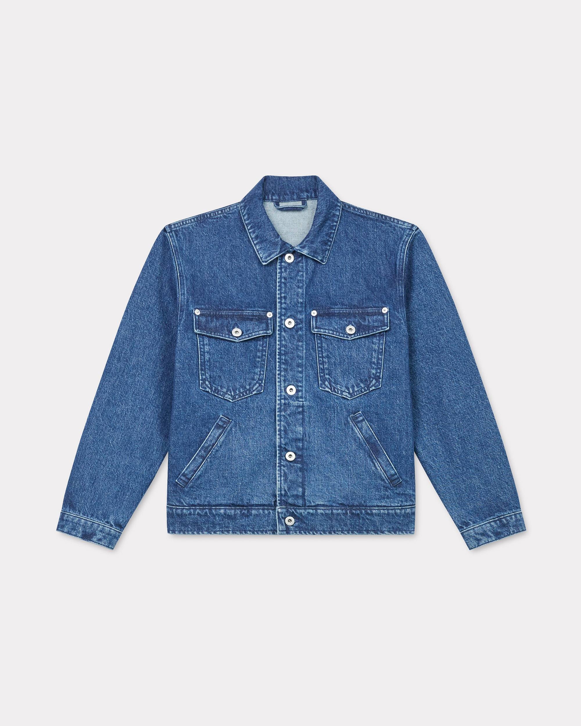 'Boke Flower' trucker jacket. Double stone wash. Japanese denim. Two patch pockets at front. Jetted pockets at side. Boke Flower and KENZO Paris at back. Engraved buttons. Product Reference: FE62DV2376A3.DS SIZE & FIT The model is 175 cm tall and wears a size S. Oversize fit. COMPOSITION & CARE Made in Tunisia 100% cotton Do not bleach Mild professional dry-cleaning in: hydrocarbons Iron at low temperature Line drying in the shade Do not tumble dry 30°C very mild fine wash Very mild professional wet-cleaning