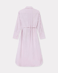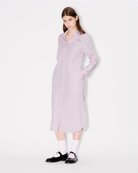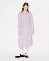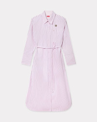 'Boke Flower' pin midi shirting dress. All over striped poplin cotton. Removable golden pins. Single breasted at front and removable belt. Shirt collar and shirt bottom detail with small vent. Two side pockets. 'Boke Flower' pin, 'Boke Flower' button at cuffs and 'KENZO Paris' engraved buttons. Product Reference: FF62RO4049LU.33 SIZE & FIT The model is 175 cm tall and is wearing size S. Back length at 114 cm. COMPOSITION & CARE Made in Tunisia 100% cotton Mild professional dry-cleaning in: hydrocarbons 30°C very mild fine wash Very mild professional wet-cleaning