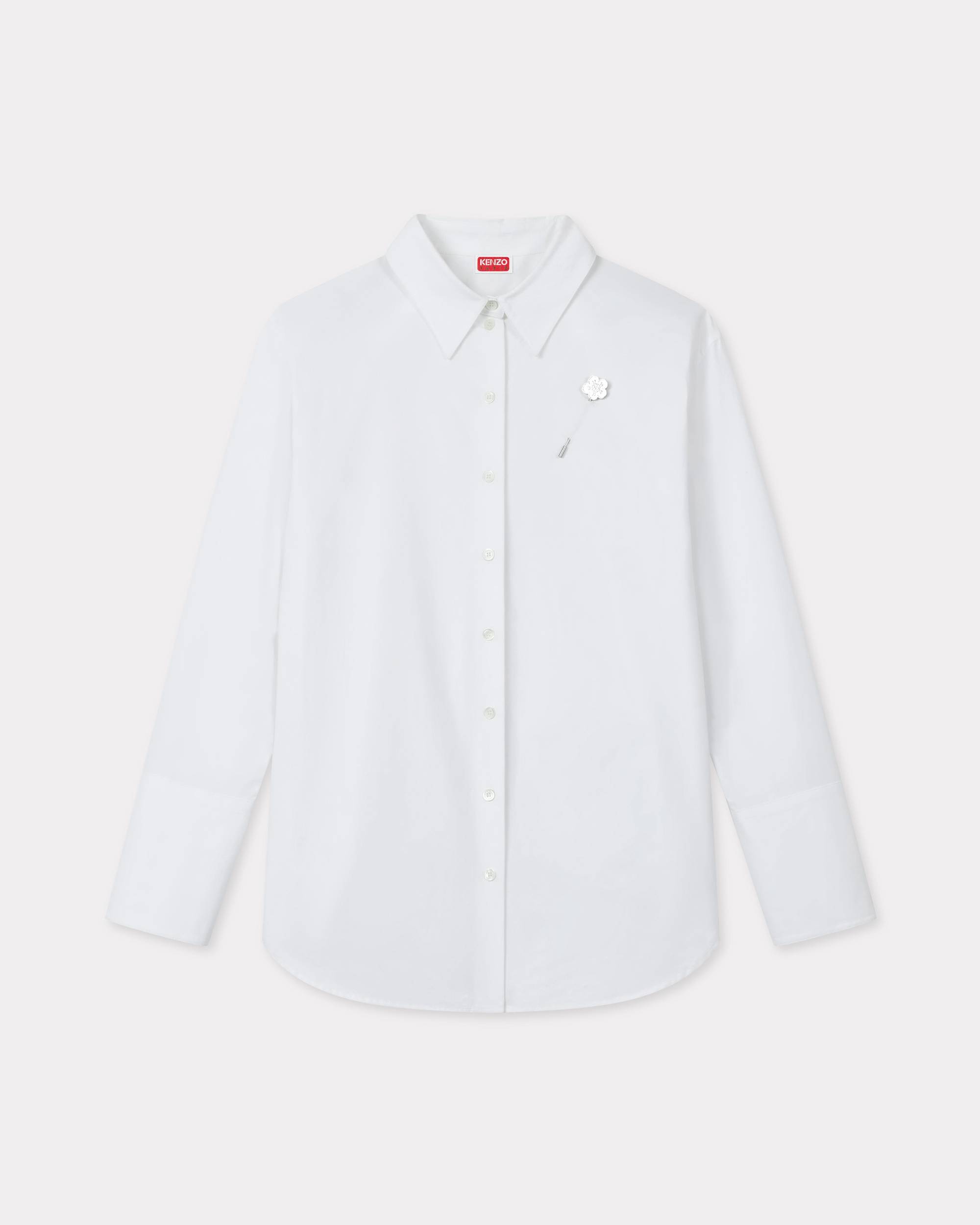 'Boke Flower' shirt in cotton poplin. Removable silver pins. Single breasted closure. 1 button at cuffs. Boke Flower pins. Boke Flower button at cuffs. 'KENZO Paris' engraved buttons. Product Reference: FF52CH2549LB.01 SIZE & FIT The model is 175 cm tall and is wearing size S. Back length at 68 cm. COMPOSITION & CARE Made in Tunisia 100% cotton Do not bleach Mild professional dry-cleaning in: hydrocarbons Iron at low temperature Line drying in the shade Do not tumble dry 30°C very mild fine wash Very mild professional wet-cleaning