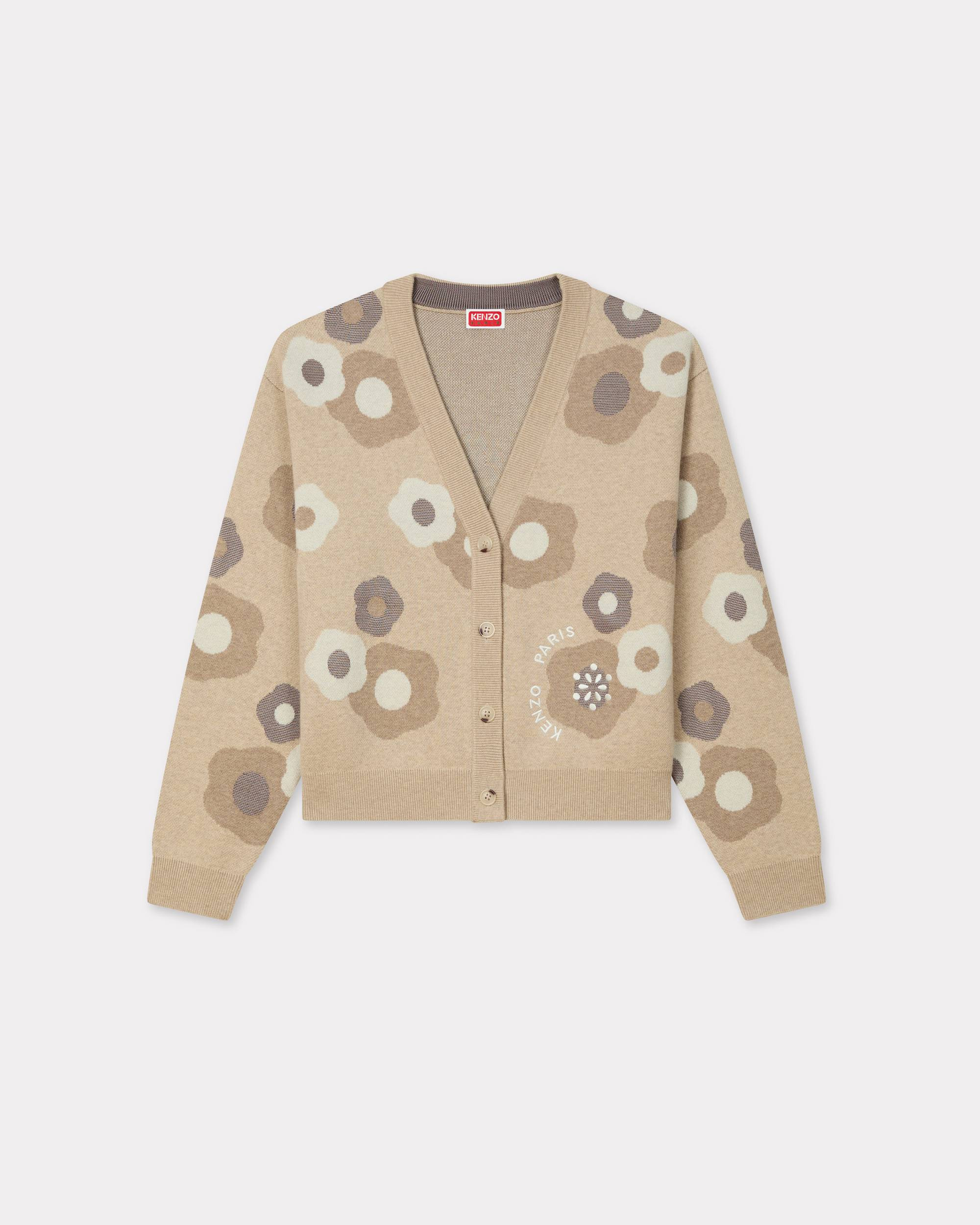 'Hana Dots' embroidered cardigan. Wool and Cotton blend. V-neck buttoned cardigan. Tone on tone branded buttons. 'Hana Dots' artwork. Embroidery 'KENZO Paris’ signature. Product Reference: FF62CA7023CR.11 SIZE & FIT The model is 175 cm tall and is wearing size S. COMPOSITION & CARE Made in China 46% wool, 37% cotton, 17% viscose Mild professional dry-cleaning in: hydrocarbons Flat drying in the shade Do not tumble dry Hand wash Very mild professional wet-cleaning