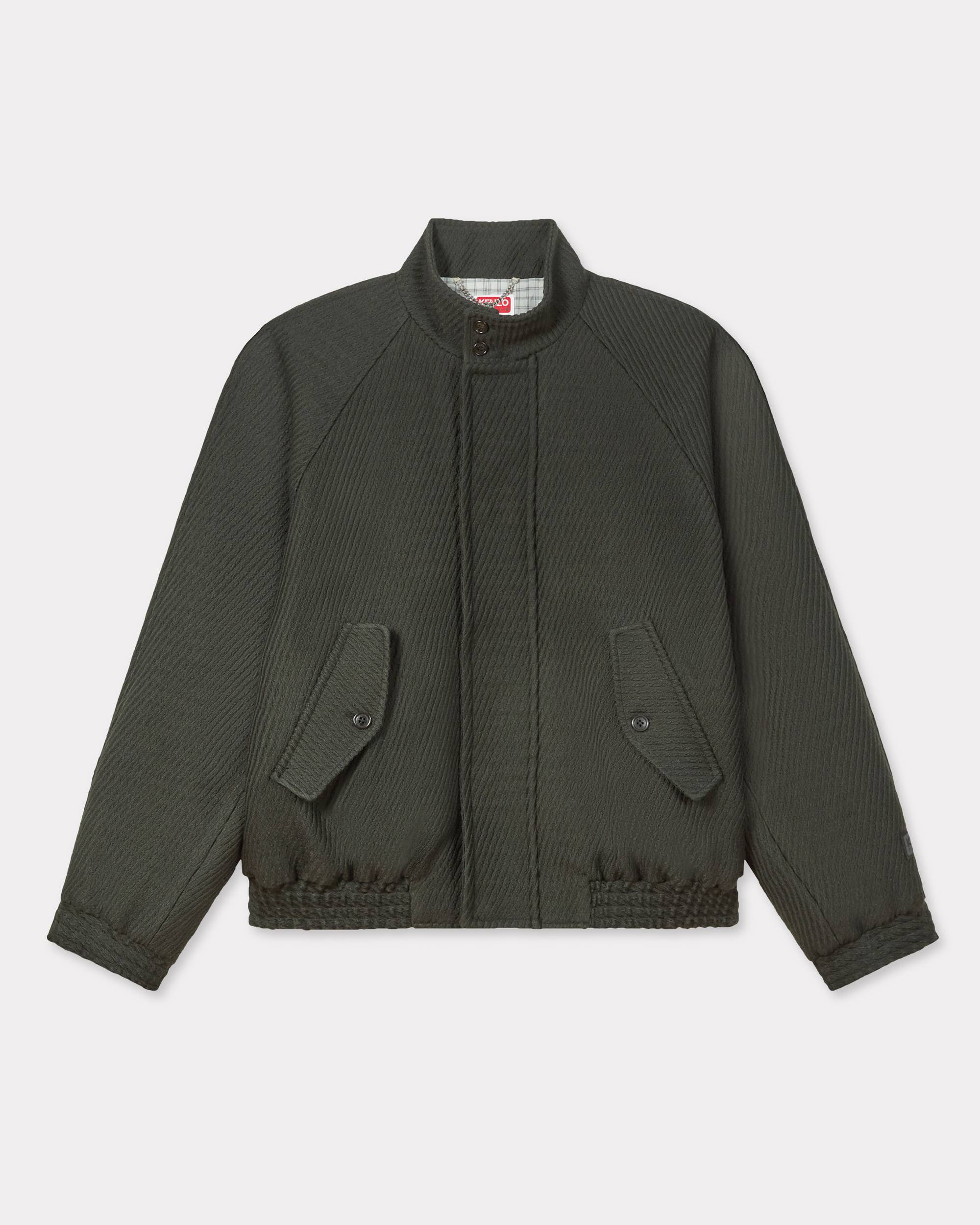 Harrington blouson. Virgin wool and nylon. 'Boke Flower' chain hanger loop. Two flap pockets. One inside pocket. Ventilation flap on the back, raglan sleeves and collar integrated with a front flap. Product Reference: FF65BL1539PM.51 SIZE & FIT The male model is 185 cm tall and is wearing size M. Back length at 71 cm. Boxy fit. COMPOSITION & CARE Made in Bulgaria 94% virgin wool, 6% polyamide Iron at low temperature Line drying in the shade Do not tumble dry Do not wash