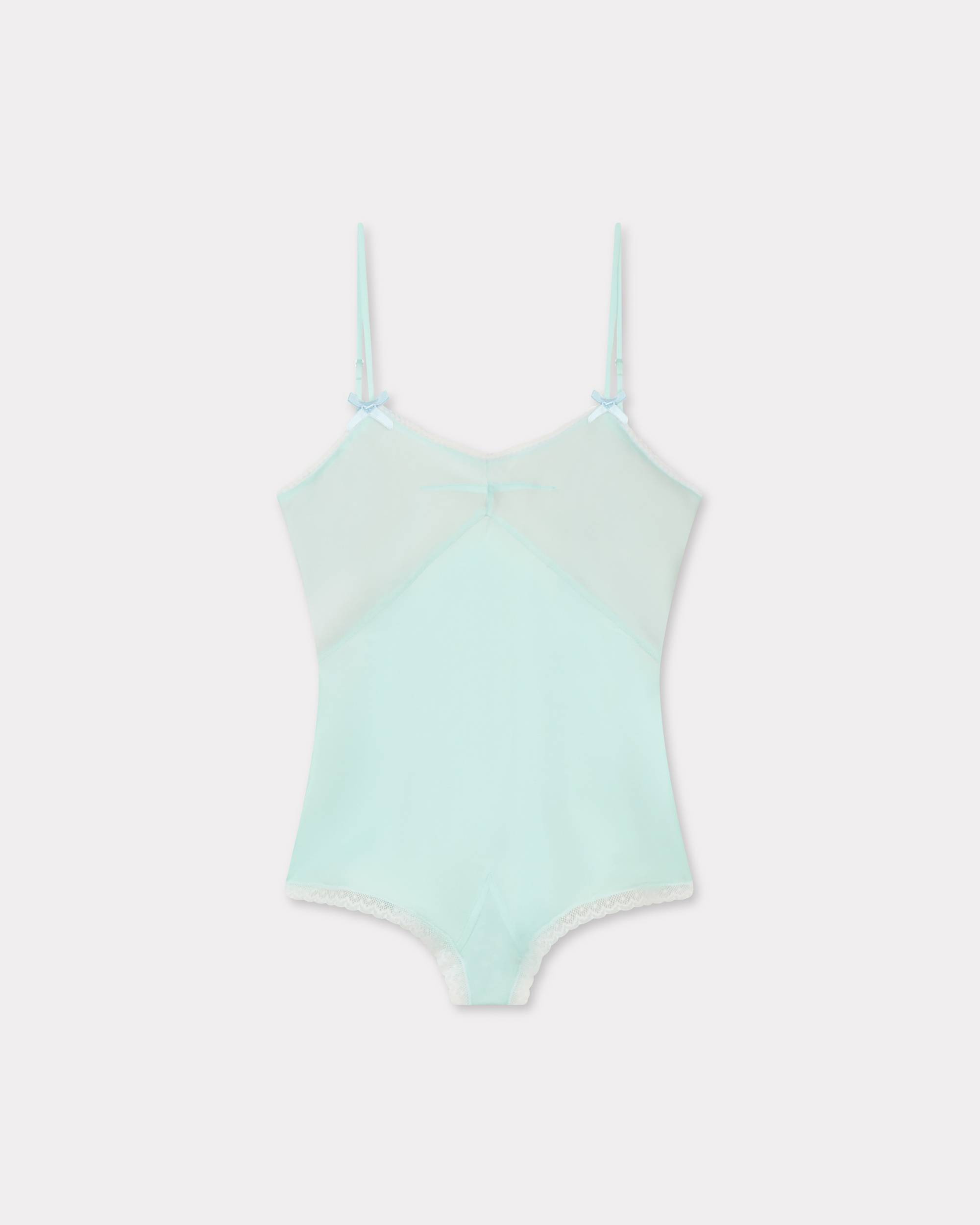 Jumpsuit. Silk and lace finishings. Backless. Adjustable straps at back. KENZO Archive embroidery at back. Product Reference: FF62CO5519AO.60 SIZE & FIT The model is 175 cm tall and is wearing size S. COMPOSITION & CARE Made in Madagascar 100% silk Do not bleach Mild professional dry-cleaning in: hydrocarbons Iron at low temperature Flat drying in the shade Do not tumble dry Hand wash Very mild professional wet-cleaning