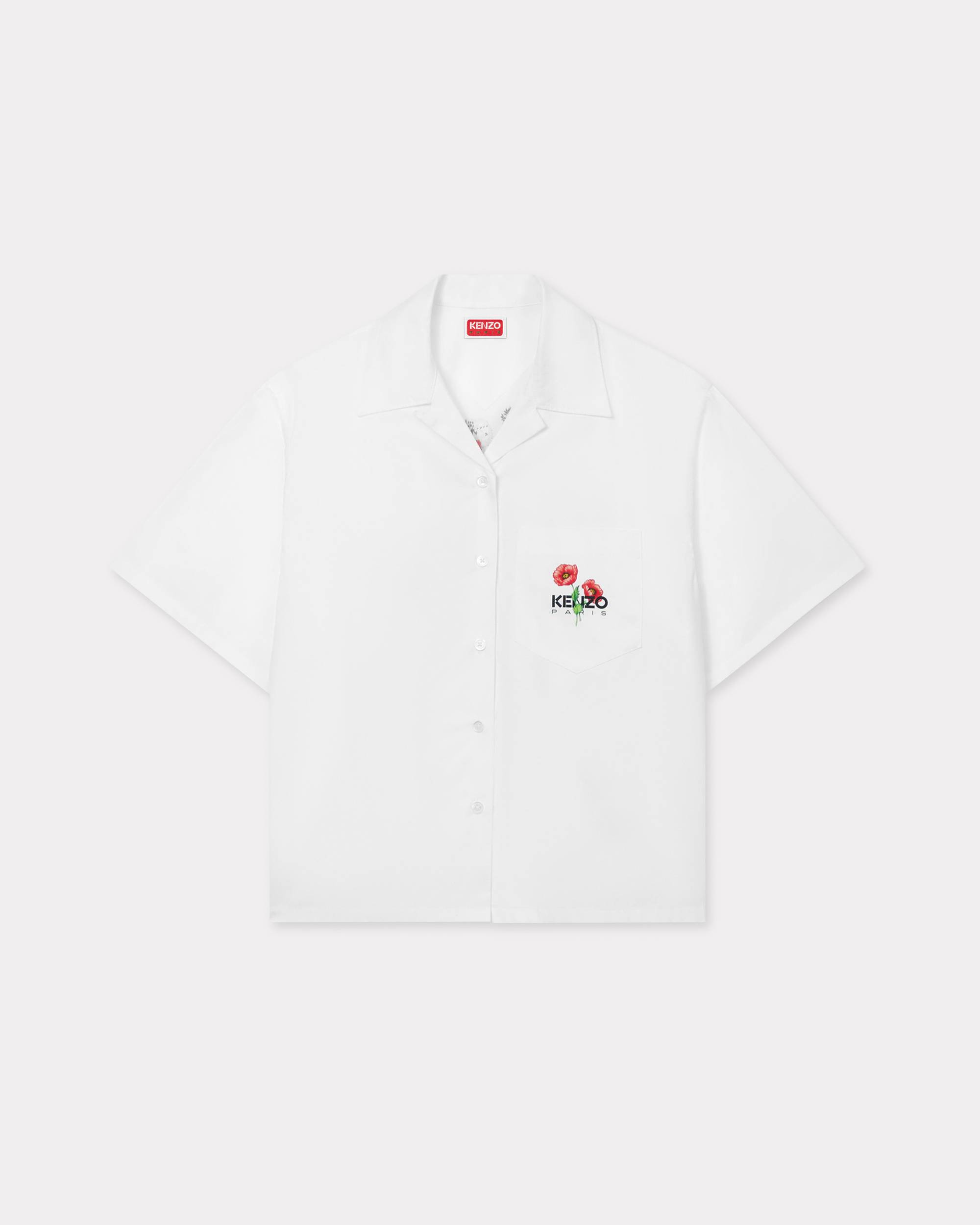 This short-sleeved Hawaiian shirt is set apart by the floral motif on the back: a contemporary reinterpretation of the contents of the fashion house's archives and an embodiment of Kenzo Takada's love of flowers. On the front, the piece features a subtle 'Kenzo Paris' logo, also drawn from the archives. 'KENZO Archive Bouquet' hawaiian shirt. Poplin cotton. Single breasted closure and patch pocket at chest. Product Reference: FF62CH2619P7.01 SIZE & FIT The model is 175 cm tall and is wearing size S. Back length at 58 cm. Boxy boyish fit. COMPOSITION & CARE Made in Tunisia 100% cotton 30°C very mild fine wash