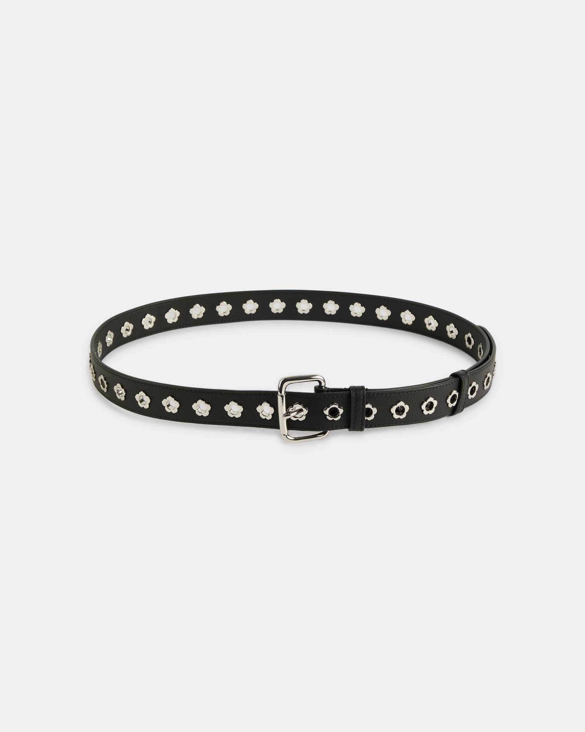 'KENZO Buckle' small genderless belt. 'Boke Flower' eyelets. Adjustable belt. Classic buckle. Carried as a belt. Product Reference: FF68CE050L05.99.TU SIZE & FIT Width: 35 mm. Length: 118 cm. Adjustable belt. COMPOSITION & CARE Made in Vietnam 100% cow leather Do not iron Do not tumble dry