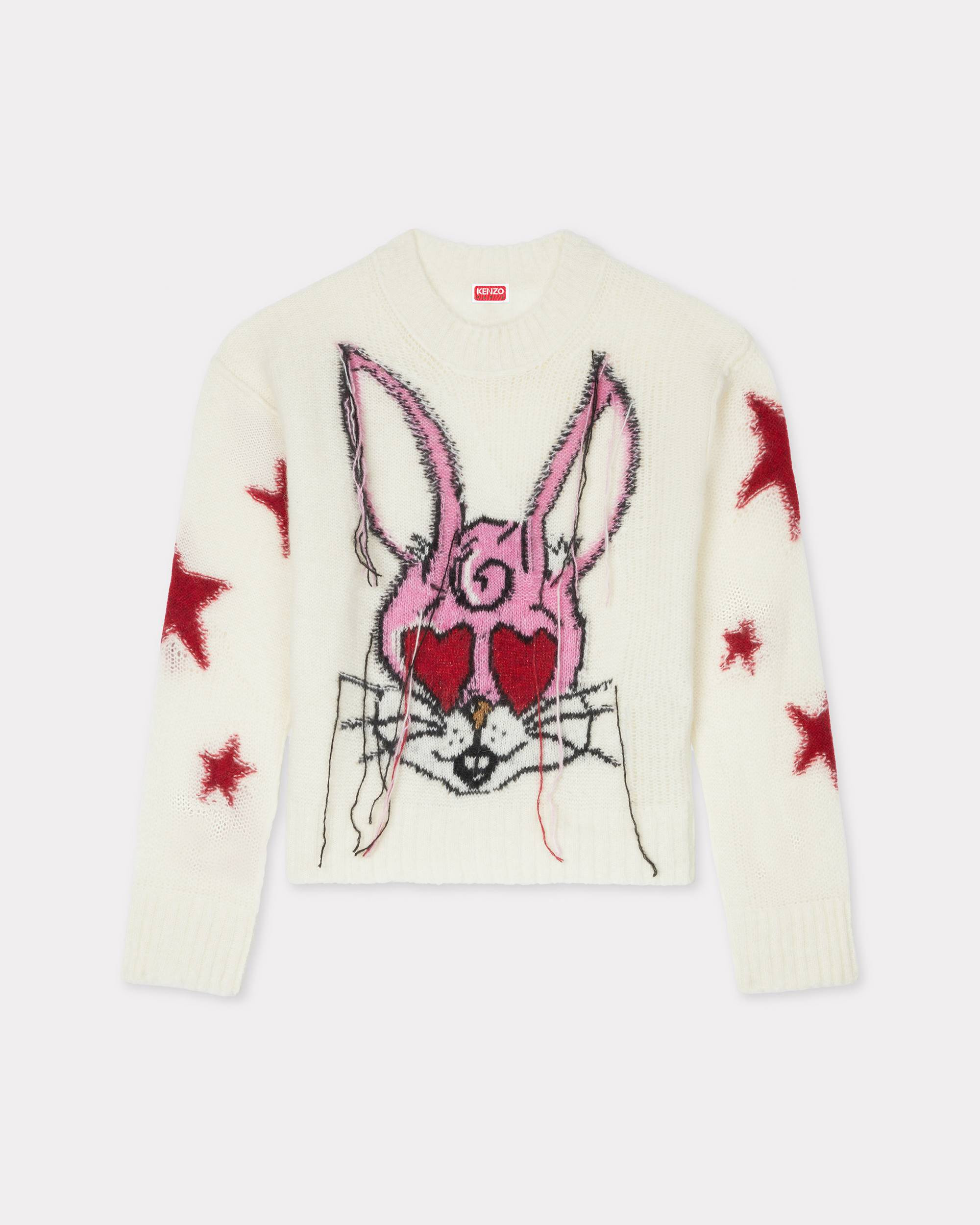 Inspired by the Autumn/Winter 2025 fashion show, this jumper has a bold grungy look with a little twist of imagination. Knitted in alpaca wool, this piece features Luke the rabbit, the season's iconic character. Textured fringes accentuate the piece's graphic style, while a logo embroidered in satin stitch on the back under the neck, adds a subtle signature to the design. 'KENZO Cartoon' jumper. Hairy wool alpaca. Intarsia knitting, play on open & closed stitches, random fringes. Embroidered seasonal branding at back, below the collar. Product Reference: FF62PU7323BK.03 SIZE & FIT The model is 175 cm tall and is wearing size S. Regular fit. COMPOSITION & CARE Made in Italy 50% polyamide, 50% alpaca Do not bleach Mild professional dry-cleaning in: hydrocarbons Do not iron Flat drying in the shade Do not tumble dry Hand wash Very mild professional wet-cleaning