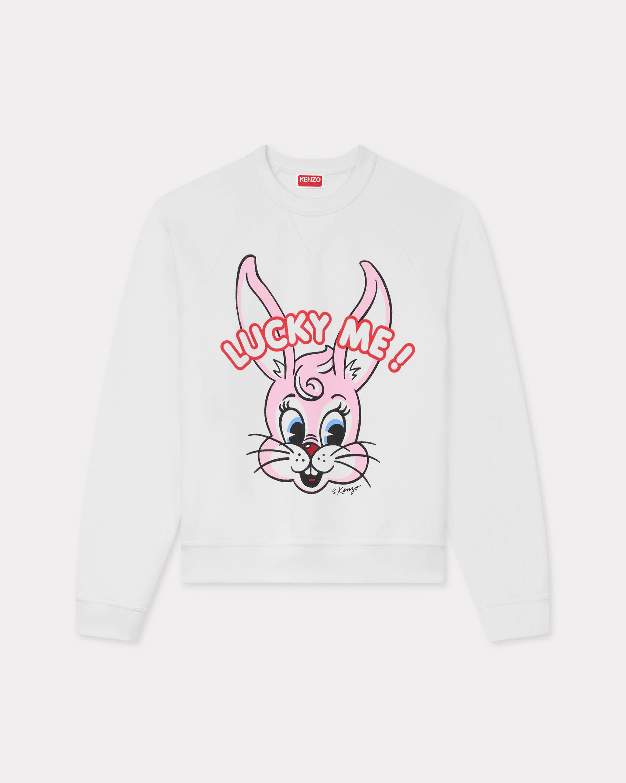 This sweatshirt with a classic cut is part of the creative world of the Autumn-Winter 2025 fashion show, featuring Luke the rabbit, the collection's star character. Made from lightly brushed fleece with a vintage effect, it also features this season's 'Lucky Me' design. 'KENZO Cartoon' sweatshirt. Light Brushed Molleton. Crewneck. Front placed printed graphic. Seasonal branding printed in the artwork. Product Reference: FF62SW5544MR.02 SIZE & FIT The model is 175 cm tall and is wearing size S. Classic fit. COMPOSITION & CARE Made in Portugal 87% cotton, 13% polyester Do not bleach Do not tumble dry Very mild professional wet-cleaning