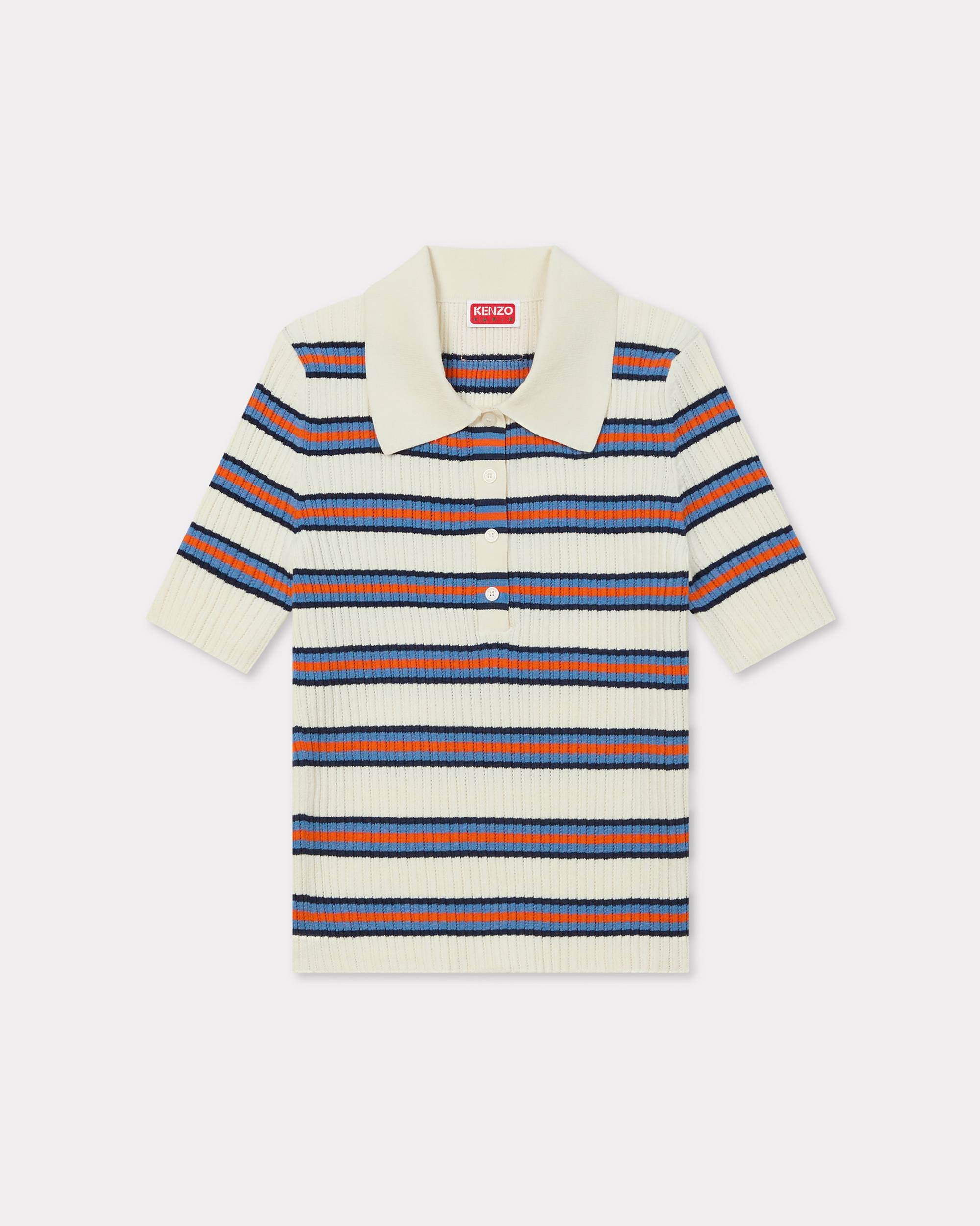 This striped knit polo features the 'KENZO Coast Lines' print, inspired by retro beachwear for a summery look. This cotton knitted piece stands out for its comfortable texture and vintage-inspired graphic look, offering a modern take on the classic polo and designed for a relaxed summer. Buttons bearing the 'KENZO Paris' logo and a label with the new orange 'KENZO Paris' logo add a subtle touch. 'KENZO Coast Lines' knitted polo. Cotton. Branded ‘KENZO Paris’ buttons. ‘KENZO Elephant Logo’ label at back below the collar. Product Reference: FF62TO6003CD.02 SIZE & FIT The model is 175 cm tall and is wearing size S. COMPOSITION & CARE Made in Turkey 78% cotton, 20% polyamide, 2% elastane Mild professional dry-cleaning in: hydrocarbons Do not tumble dry Mild professional wet-cleaning