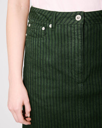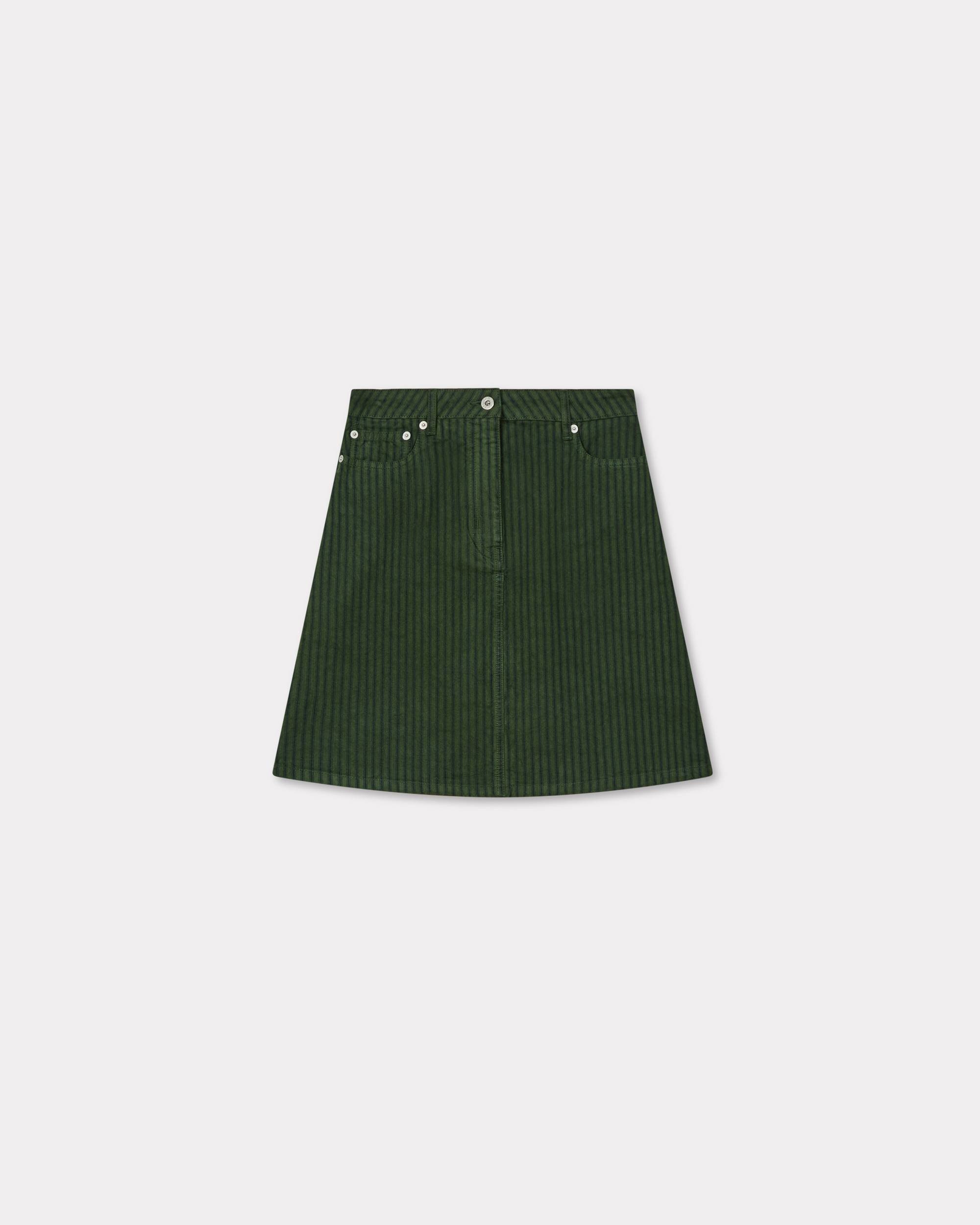 'KENZO Coast Lines' skirt. Dova Japanese denim. High rise waist. Contrasted topstitches. Two front pockets and two back pockets. ‘KENZO Coast Lines’ print. 'KENZO Paris' leather jacron at back, Mount Fuji topstitching at back pockets and engraved buttons. Product Reference: FF62DJ2746G0.49 SIZE & FIT The model is 175 cm tall and is wearing size S. Back length at 46 cm. COMPOSITION & CARE Made in Portugal 100% cotton 30°C very mild fine wash