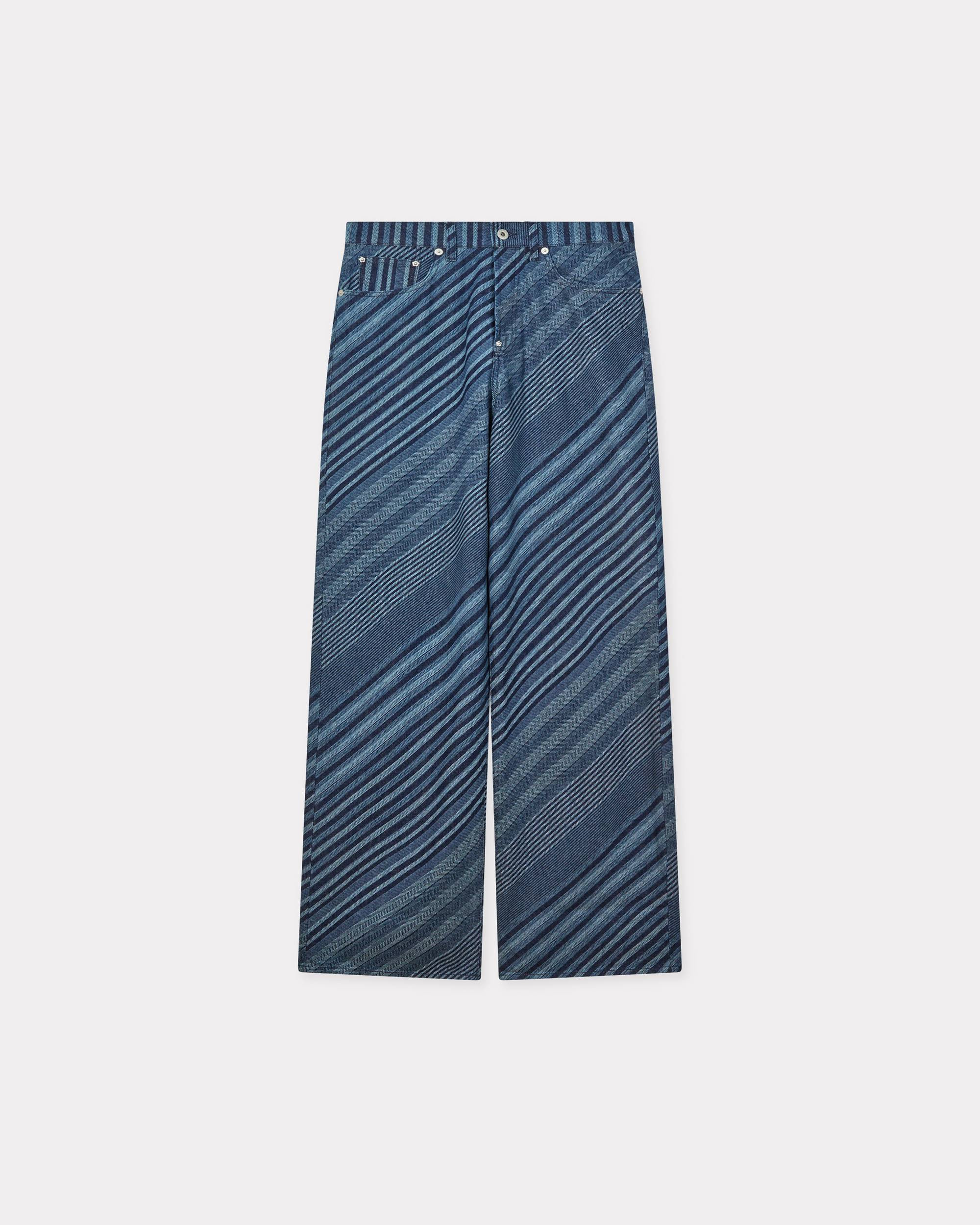 'Kenzo Diagonal Stripe' turn up wide fit jeans in Japanese denim