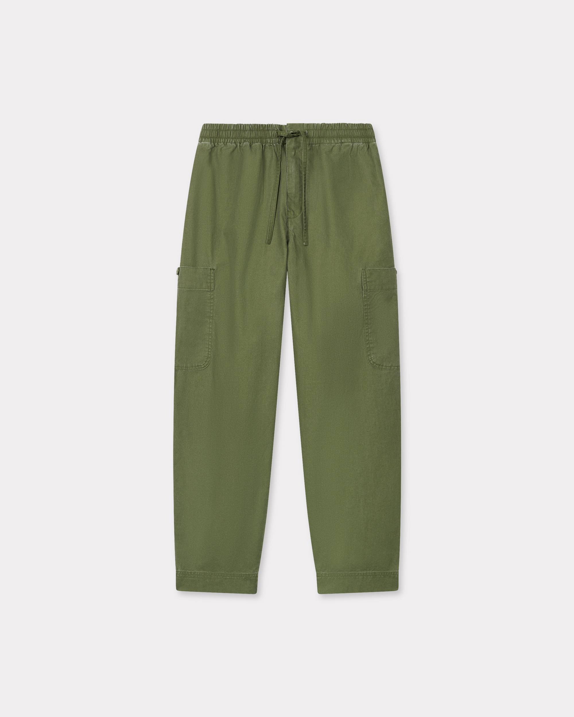 'KENZO Elephant Logo' cargo jogpants. Coated cotton. Elasticated belt with drawstring and button opening. Two side pockets, two cargo pockets and one back pocket. ‘KENZO Elephant Logo’ embroidery on the back pocket. Product Reference: FF65PA5019GH.51 SIZE & FIT The model is 185 cm tall and is wearing size M. Leg length at 108 cm. Loose fit. COMPOSITION & CARE Made in Tunisia 100% cotton Line drying in the shade Do not tumble dry 30°C very mild fine wash