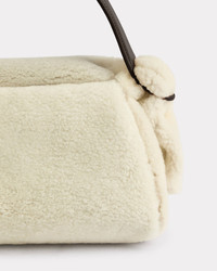 Crafted in shearling and embellished with a contrasting chocolate leather handle, this large Furoshiki bag is an updated version of the original model first seen on the Autumn-Winter 2024 catwalk. Inspired by the eponymous Japanese wrapping technique, it reproduces its characteristic knots and folds. 'KENZO Furoshiki' large shoulder bag in sheepskin. Shoulder-carried. Large handle. Zip fastener. 1 inside zipped pocket. 1 inside card case. Embossed 'KENZO Paris' logo on the top handle. Product Reference: FF62SA828L08.03.TU SIZE & FIT Dimensions: 35 x 42.5 x 16 cm. Handle drop length: 23 cm. COMPOSITION & CARE Made in Spain 100% sheep fur Do not dry-clean Do not wash
