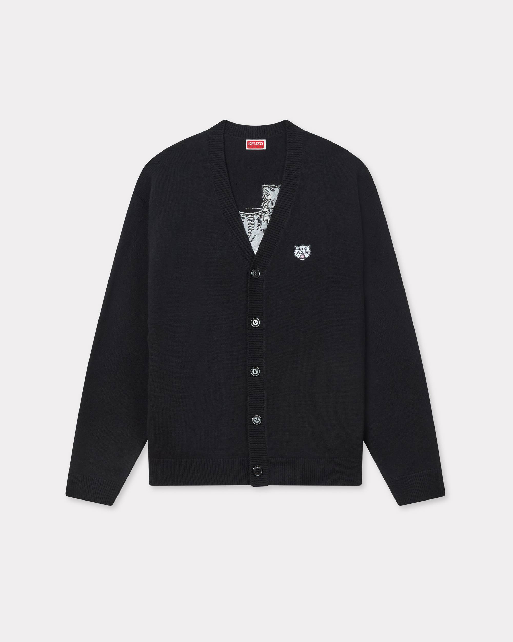 'KENZO Happy Tiger' embroidered cardigan in cotton merino wool