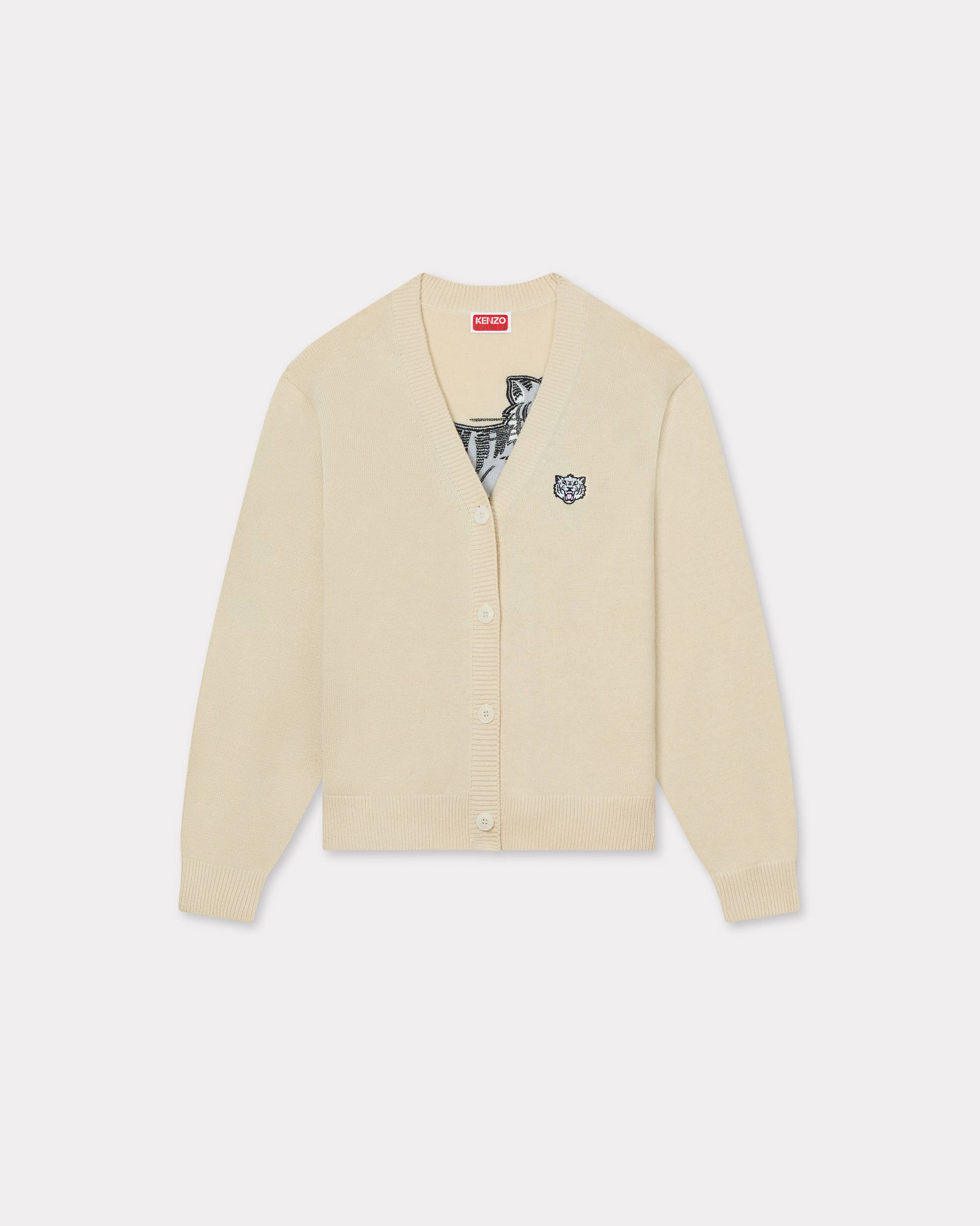 'KENZO Happy Tiger' embroidered cardigan in wool cotton