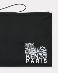 'KENZO Happy Tiger' large clutch. 'KENZO Varsity' line. Hand-carried. Zip fastener. Embroidered 'KENZO Happy Tiger' & 'KENZO Paris' logo. Product Reference: FF65PM612F29.99.TU SIZE & FIT Dimensions : 30 x 20 x 1.5 cm. Wrislet: 17 cm. COMPOSITION & CARE Made in Vietnam 100% polyester Do not dry-clean Do not wash