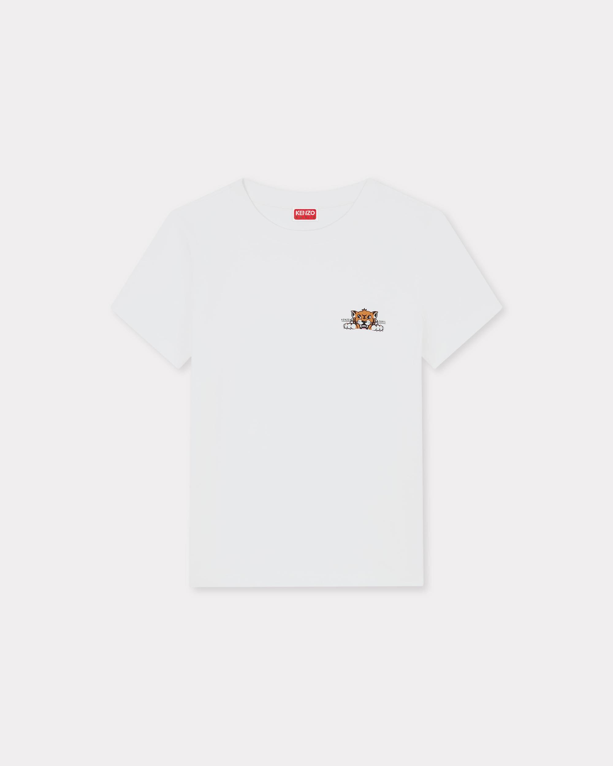 'KENZO Happy Tiger' T-shirt. Light Soft Jersey. ‘Happy Tiger’ printed at chest. ‘KENZO Paris’ print at center back. Product Reference: FF52TS1694SO.02 SIZE & FIT The model is 175 cm tall and is wearing size S. Regular fit. COMPOSITION & CARE Made in Portugal 100% cotton Do not bleach Do not dry-clean Iron at low temperature Line drying in the shade Do not tumble dry 30°C mild fine wash Mild professional wet-cleaning