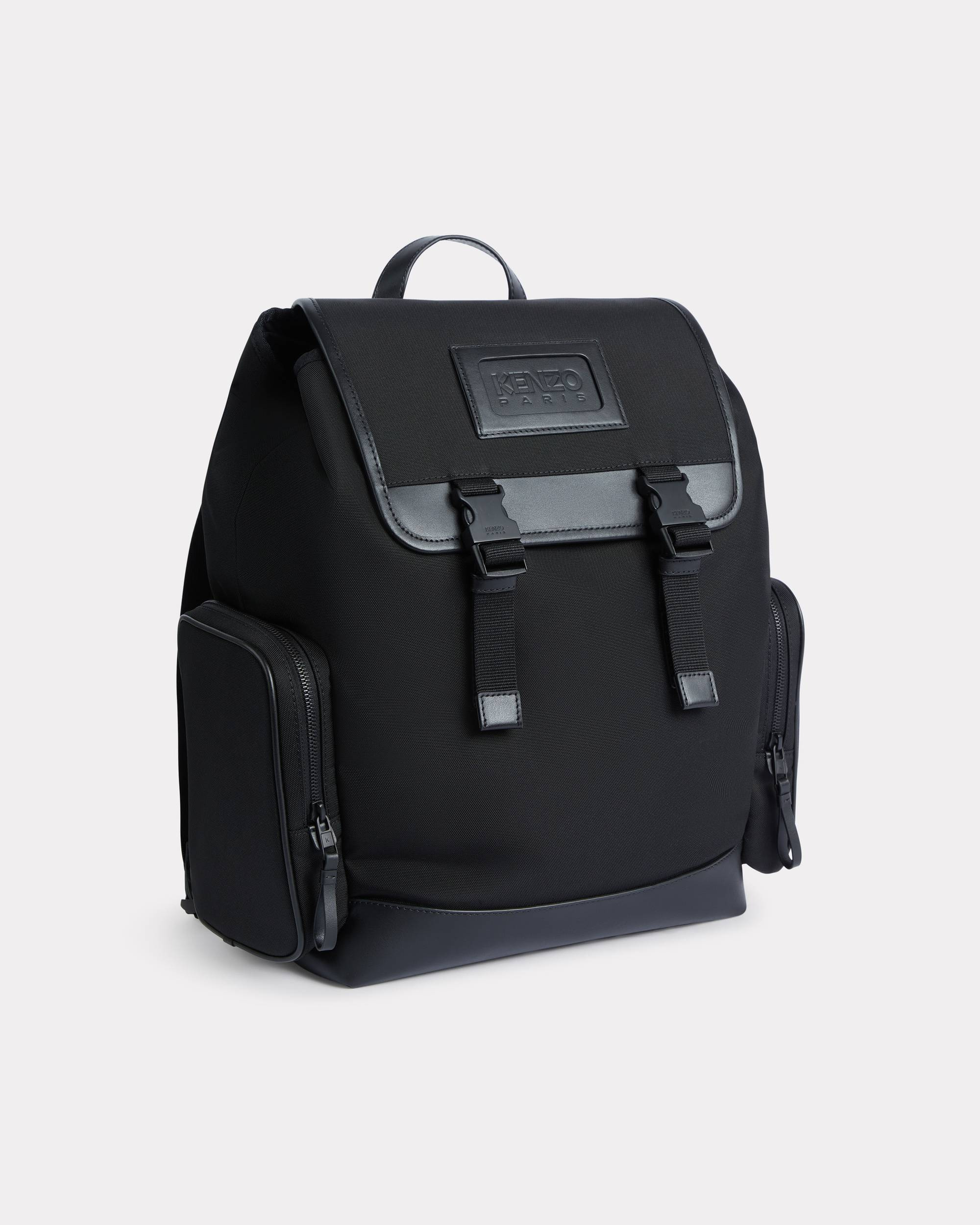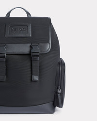 'KENZO Kommuter' flap backpack. Adjustable shoulder straps. Leather handle. Flap with 2 buckles and drawstring closure. 2 outside zipped pockets on each side. 1 inside computer compartment pocket. 1 inside zipped pocket. 1 inside flat pocket. Embossed 'KENZO Paris' logo on a leather patch. Back in mesh with 'KENZO Weave' pattern. Carried as a backpack. Product Reference: FF65SA313B15.99.TU SIZE & FIT Dimensions: 42 x 41 x 15 cm. Adjustable shoulder straps. COMPOSITION & CARE Made in Vietnam 69% polyester, 31% nylon Do not bleach Do not dry-clean Do not iron Do not wet-clean