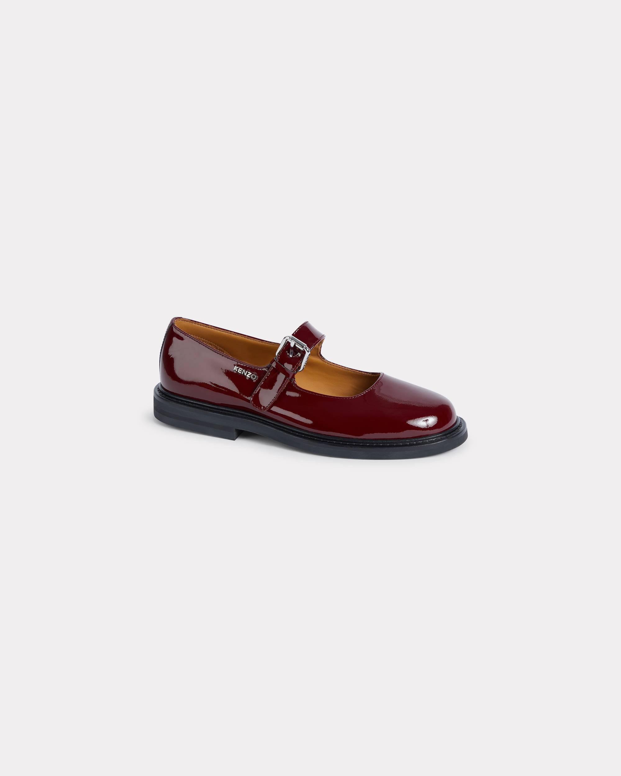 'KENZO Meari' Mary Janes. Patent calf leather. Calf leather lining. Rubber and EVA sole. KENZO silver letters on the external side of the shoes. Product Reference: FF62BA710L69.22 SIZE & FIT Sole: 2 cm. COMPOSITION & CARE Made in Italy 100% calf leather