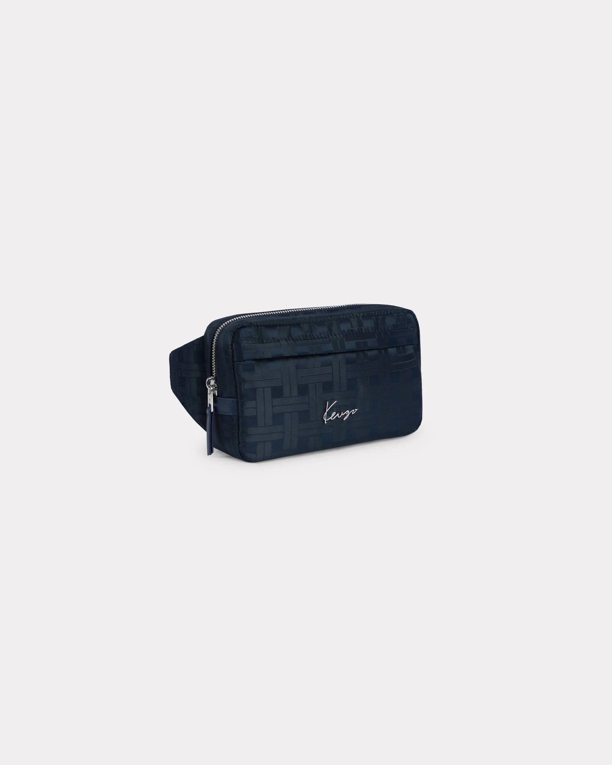 'KENZO Mura' belt bag. Carried as a belt bag or crossbody-carried. Adjustable belt. Zip fastener. Zip fastener for the front pocket. 1 outside zipped pocket. 1 inside flat pocket. Shiny nickel. 'KENZO Mura' pattern with jacquard technique. Handwritten KENZO signature in metal. Product Reference: FF65SA507F22.79.TU SIZE & FIT Dimensions: 22 x 13 x 6 cm. Waist circumference: 140 cm maximum. COMPOSITION & CARE Made in Vietnam 100% polyester Do not bleach Do not dry-clean Do not iron Do not dry Do not tumble dry Do not wash Do not wet-clean