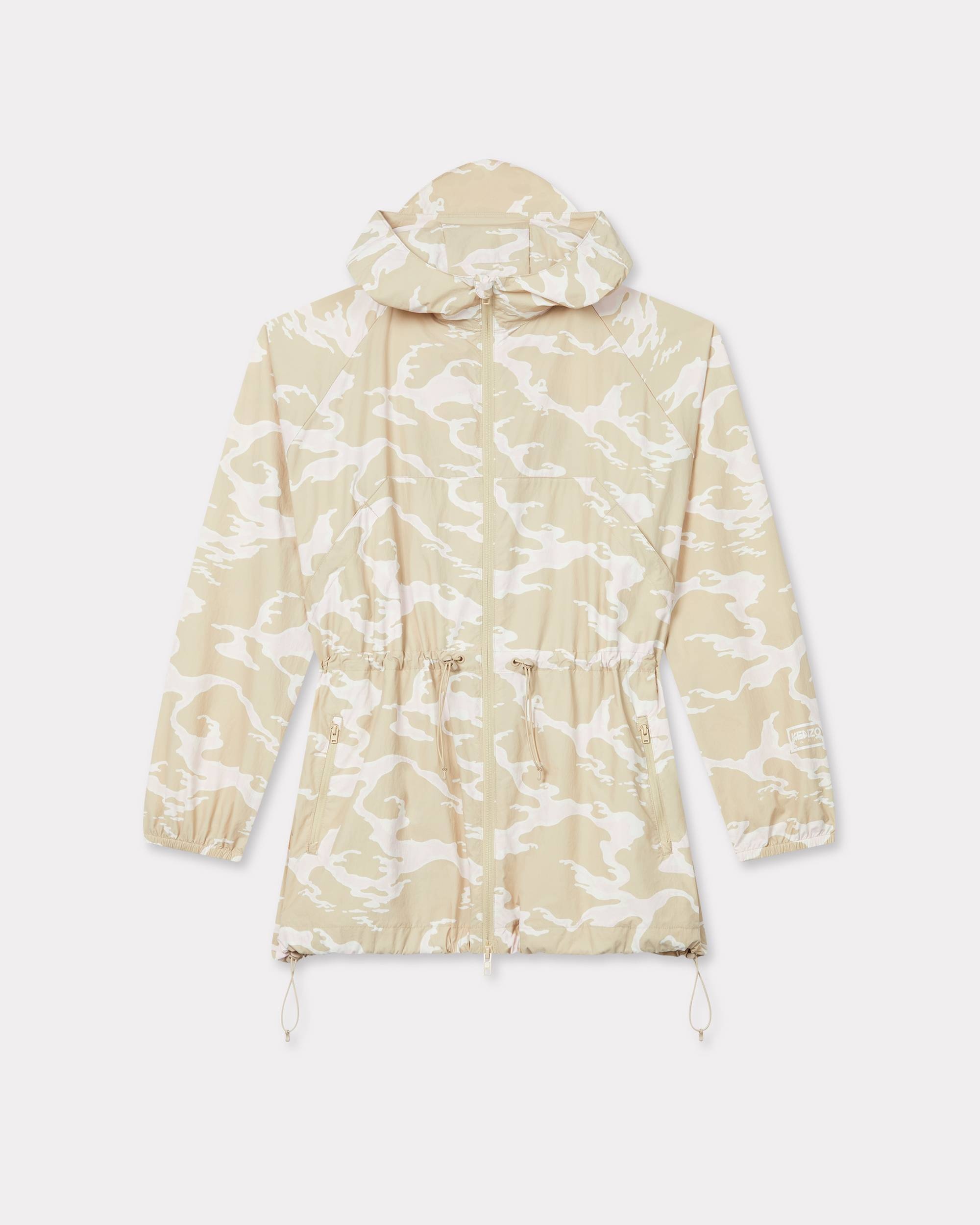 This lightweight nylon windbreaker features the 'Ocean Camo' print – a wave-inspired design that brings a contemporary edge to elements of traditional Japanese Ikat dyeing. The KENZO signature is discreetly integrated into the design, underlining the House's identity. Designed for the outdoors, this piece features a hood with built-in sun protection and a water-repellent finish for rainy days. The adjustable waist lets you tailor the shape, offering either a more structured or relaxed look. 'KENZO Ocean Camo' windbreaker. Sunbreaker function. Water-repellent & sun-repellent light nylon. Functional details as cuffs and hood, high pockets (with snap buttons) and low pockets. Elastic to adjust waist and bottom. 2-ways zip. KENZO signature inside the print. Product Reference: FF62OU1289NE.11 SIZE & FIT The model is 175 cm tall and is wearing size S. COMPOSITION & CARE Made in China 100% nylon Do not tumble dry Hand wash