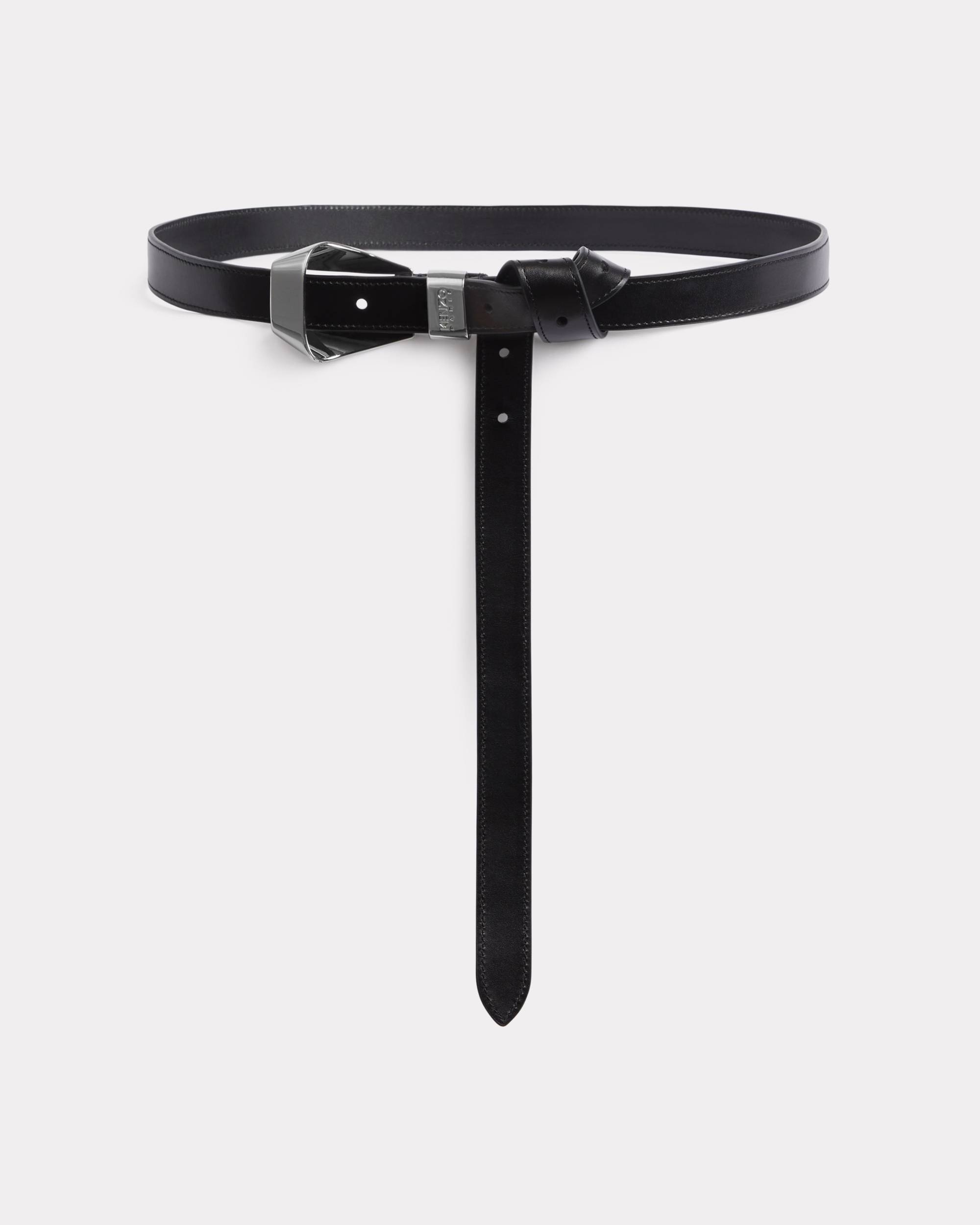 'KENZO Ribbon' leather belt. Adjustable. Press stud. Metallic piece inspired by a ribbon. Engraved with Kenzo Paris logo. Product Reference: FE62CE041L03.AG SIZE & FIT Dimensions : 2 cm. The sizes of our belts correspond to the waist circumference in centimeters. COMPOSITION & CARE Made in Italy 100% cow leather Do not bleach Do not dry-clean Do not iron Do not dry Do not tumble dry Do not wash Do not wet-clean