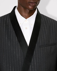 Inspired by the KENZO Takada archive and the traditional Japanese kimono, this blazer features a bow fastening and a removable 'KENZO Paris' logo on the sleeve. A satin collar and a unique wool fabric with lurex stripes enhance the slim fit. This stunning piece can be worn on its own or paired with the matching trousers. 'KENZO Stripes' double breasted kimono jacket. Striped Lurex Wool Blend. Lined. Two front flap jet pockets and one chest jet pocket. Two inside pockets. Removable tone on tone label on the cuff. Product Reference: FG55VE1609RB.98 SIZE & FIT The model is 185 cm tall and is wearing size 48. Kimono adjusted fit. Back length at 79 cm. COMPOSITION & CARE Made in Moldova 75% virgin wool, 23% polyamide, 2% elastane Do not bleach Mild professional dry-cleaning in: hydrocarbons Iron at low temperature Line drying in the shade Do not tumble dry Do not wash Do not wet-clean