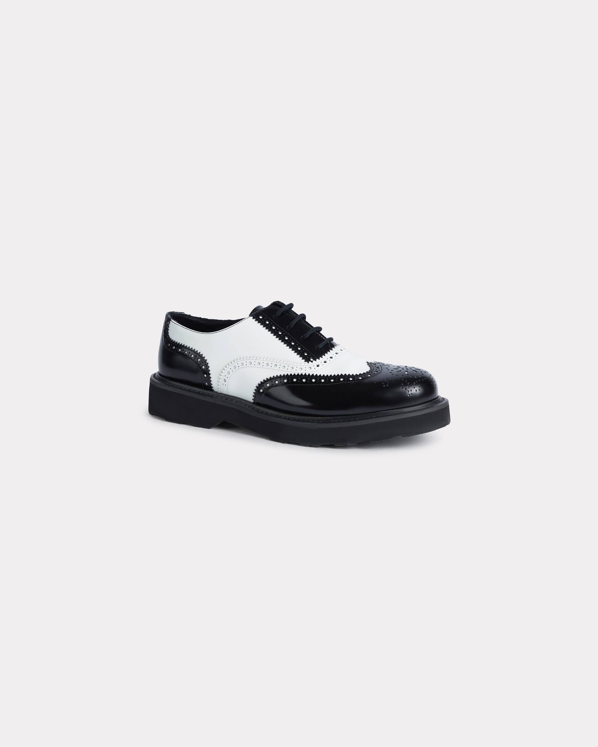 'KENZO Ukio' brogue in leather. Bicolor glazed calf leather. Calf leather lining. lightweight EVA sole. 'KENZO' silver letters on top of the front upper and boke detail wingtip. Product Reference: FF65DB114L52.01 SIZE & FIT Sole: 3.5 cm. COMPOSITION & CARE Made in Portugal 100% calf leather