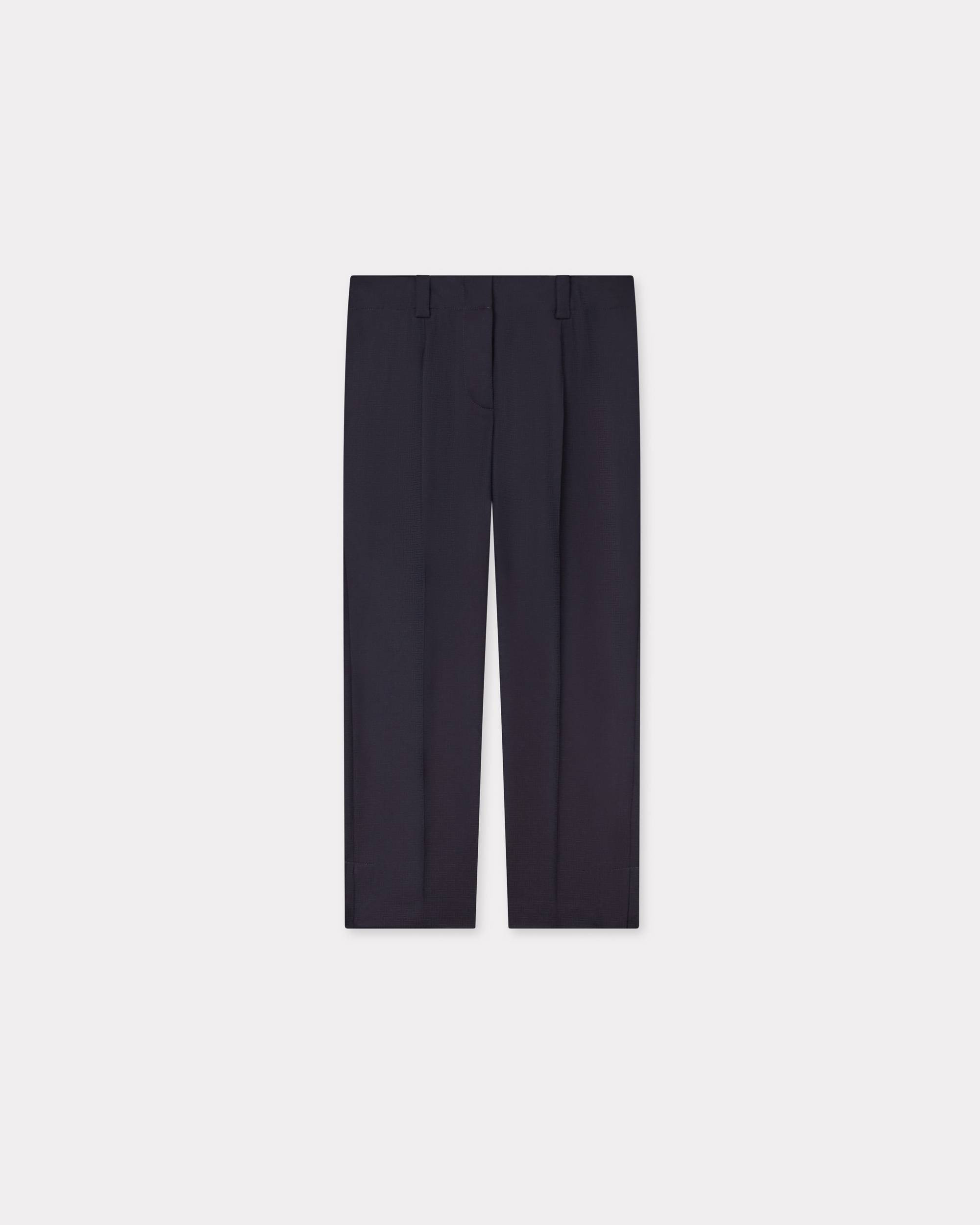 'KENZO Weave' cropped pants. Classic closure - with a zip and engraved button. 2 seam pockets at side. Small vent at bottom. Tonal 'KENZO Paris' label at back. Product Reference: FF62PA0939ID.91 SIZE & FIT The model is 175 cm tall and is wearing size S. Back length at 85 cm. Low waist. COMPOSITION & CARE Made in Romania 100% virgin wool Do not bleach Professional dry-cleaning in: hydrocarbons