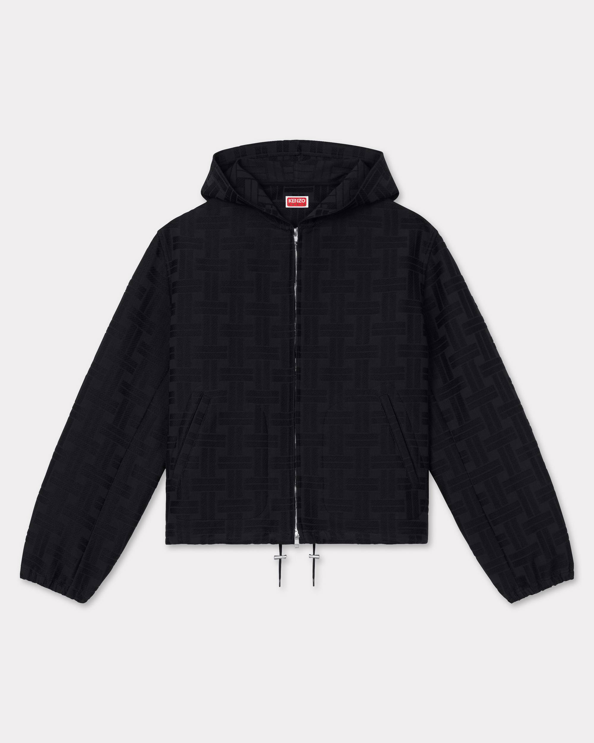 'KENZO Weave' hooded overshirt in cotton jacquard. Elasticated cuffs. Elasticated bottom adjustable with drawstrings. Contrasted KENZO Paris label on the back neck. Two side pockets. Two-way zip. Product Reference: FF55CH5329JX.99 SIZE & FIT The model is 185 cm tall and is wearing a size M. Boxy fit. Back length at 68 cm. COMPOSITION & CARE Made in Tunisia 100% cotton Do not bleach Mild professional dry-cleaning in: hydrocarbons Iron at low temperature Line drying in the shade Do not tumble dry Do not wash Do not wet-clean