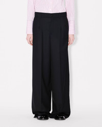 'KENZO Weave' wide leg pants. Jacquard wool. Side pockets and jetted pockets at back with buttons. Tonal 'KENZO Paris' label at back, 'KENZO Paris' engraved buttons and Tiger jacquard ribbon inside the waist. Product Reference: FF62PA1099ID.79 SIZE & FIT The model is 175 cm tall and is wearing size S. Leg length at 109 cm. COMPOSITION & CARE Made in Romania 100% virgin wool Do not bleach Line drying in the shade